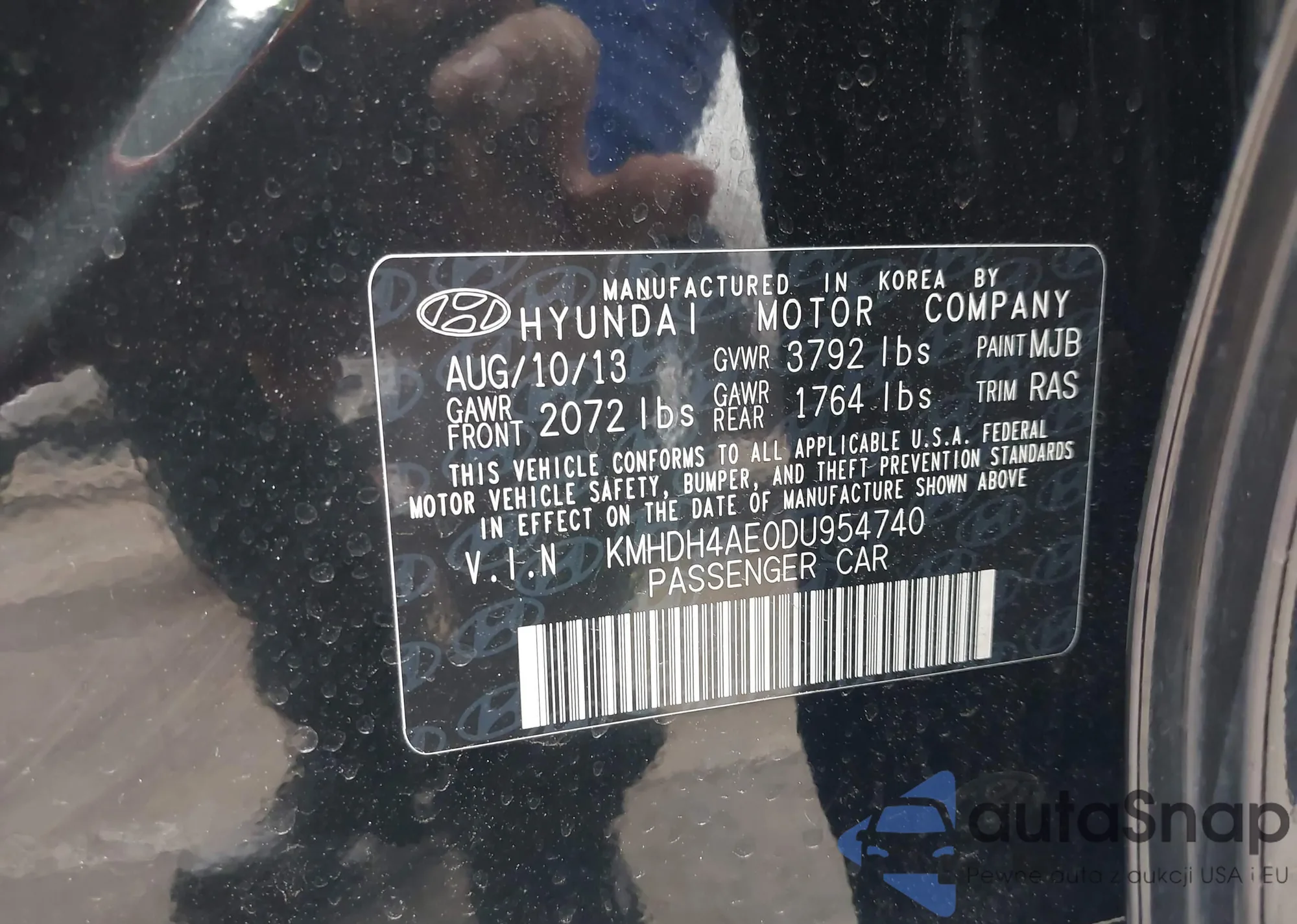 VIN: KMHDH4AE0DU954740