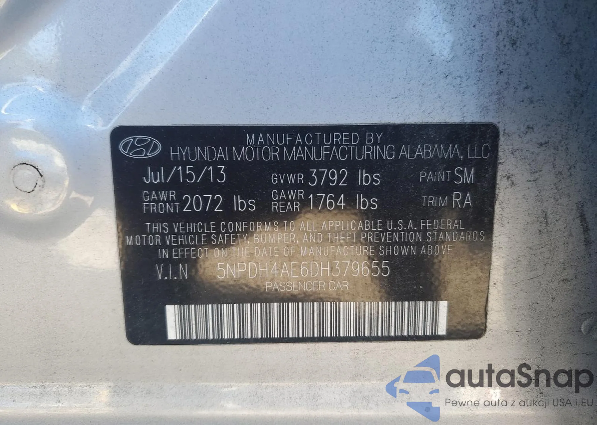 VIN: 5NPDH4AE6DH379655