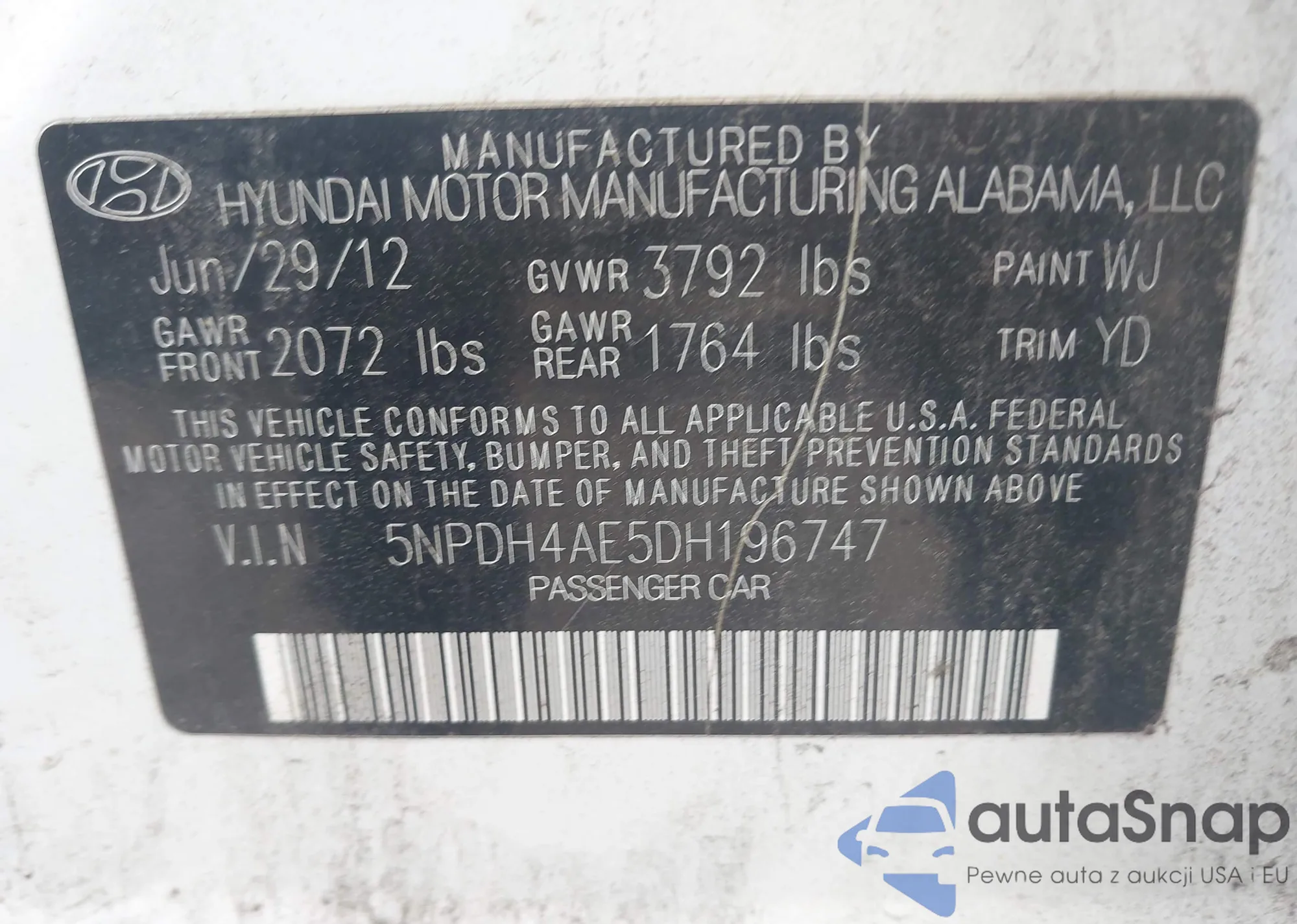 VIN: 5NPDH4AE5DH19674
