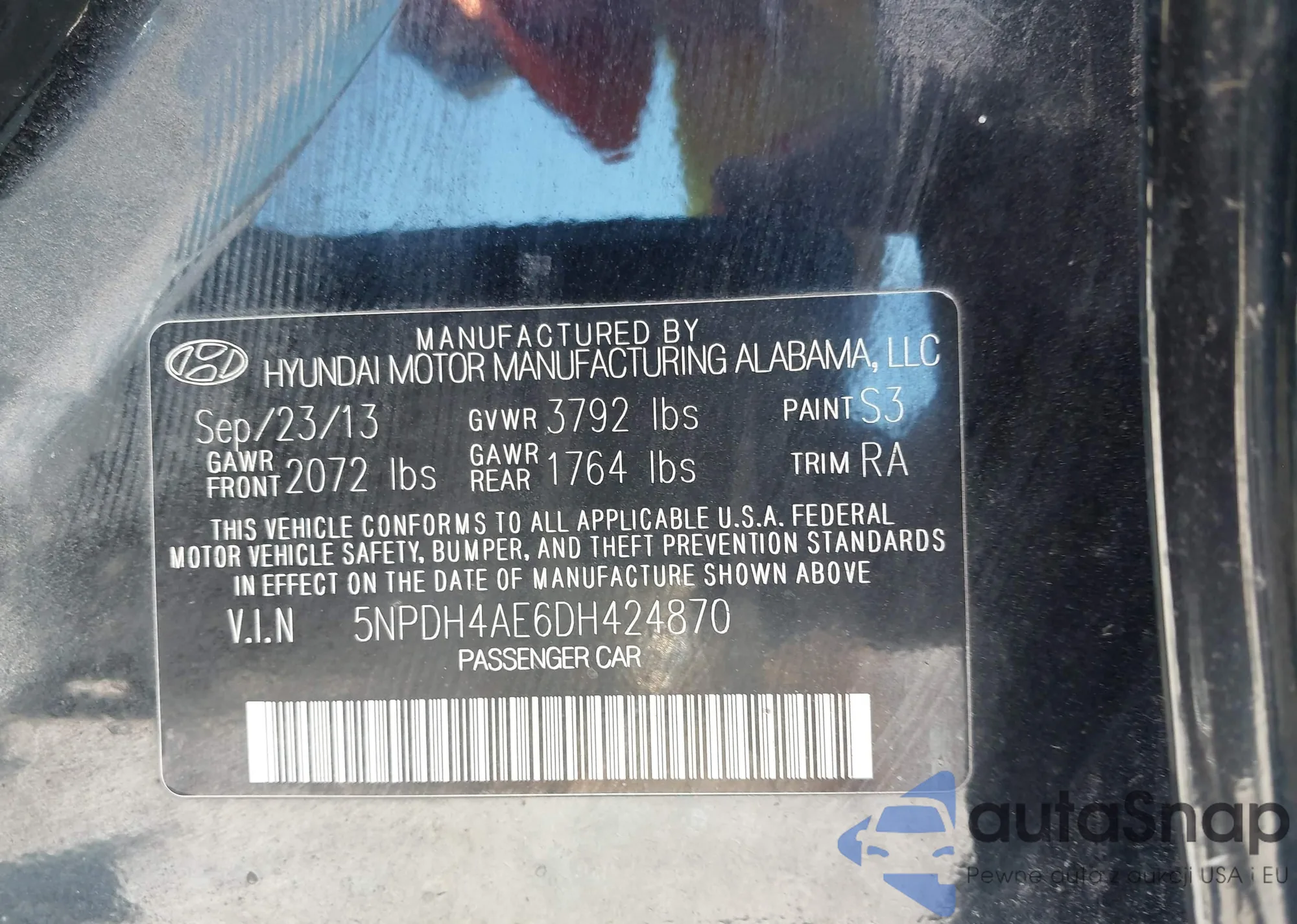 VIN: 5NPDH4AE6DH424870