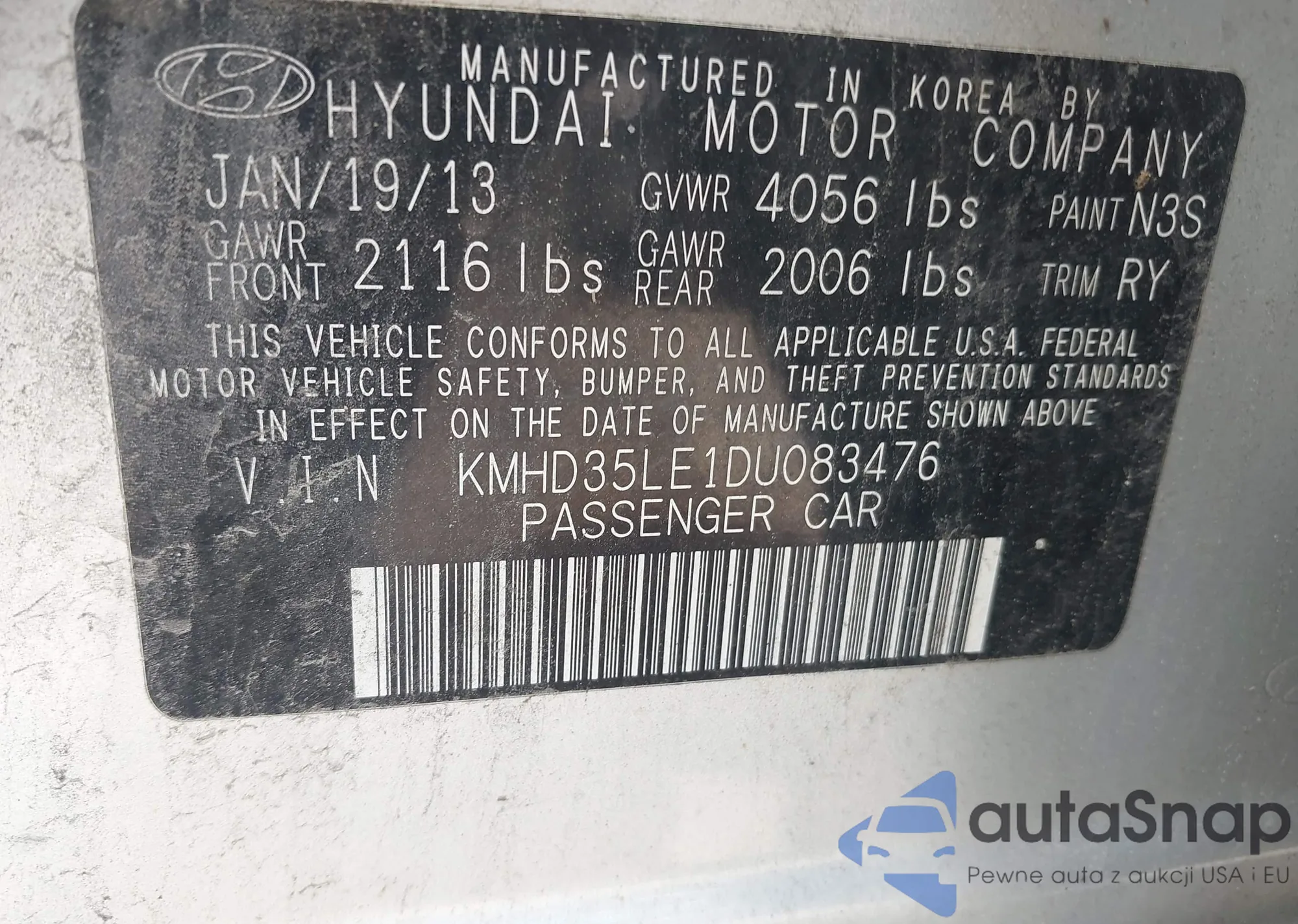 VIN: KMHD35LE1DU083476