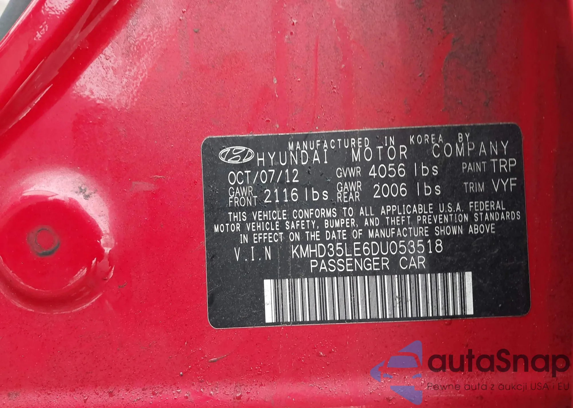 The car Hyundai Elantra 2013 (VIN KMHD35LE6DU053518) has not been auctioned before. The documents are clean, and the mileage matches or is below the market average. Sold by an insurance company – we recommend purchase. Delivery to the port will take approx. 6–8 weeks.