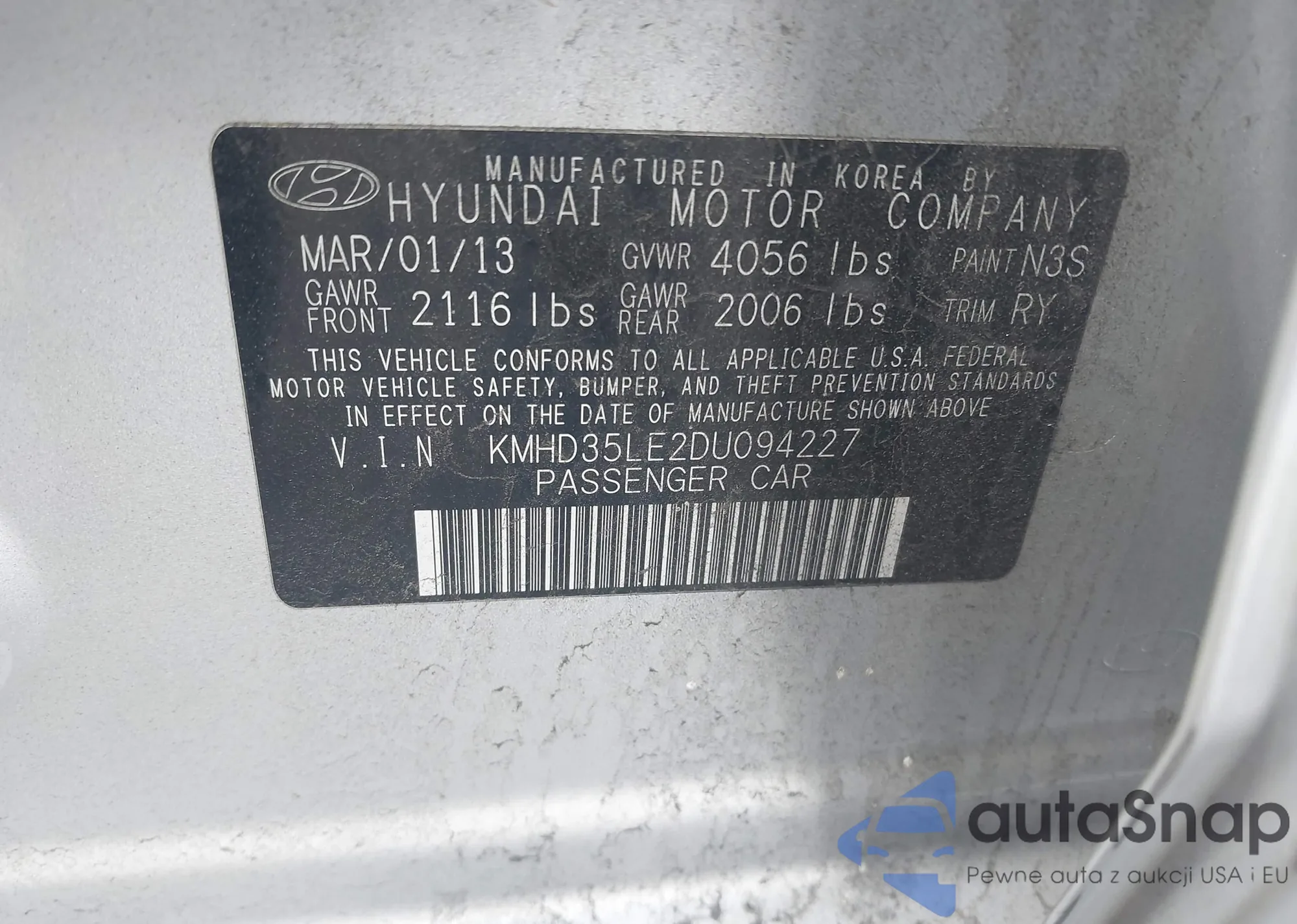 VIN: KMHD35LE2DU094227