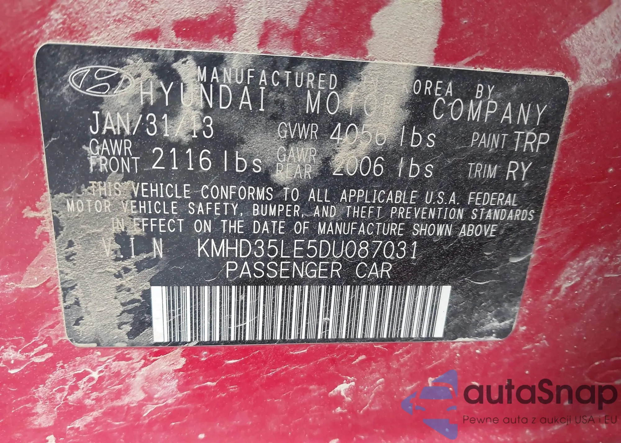 VIN: KMHD35LE5DU087031