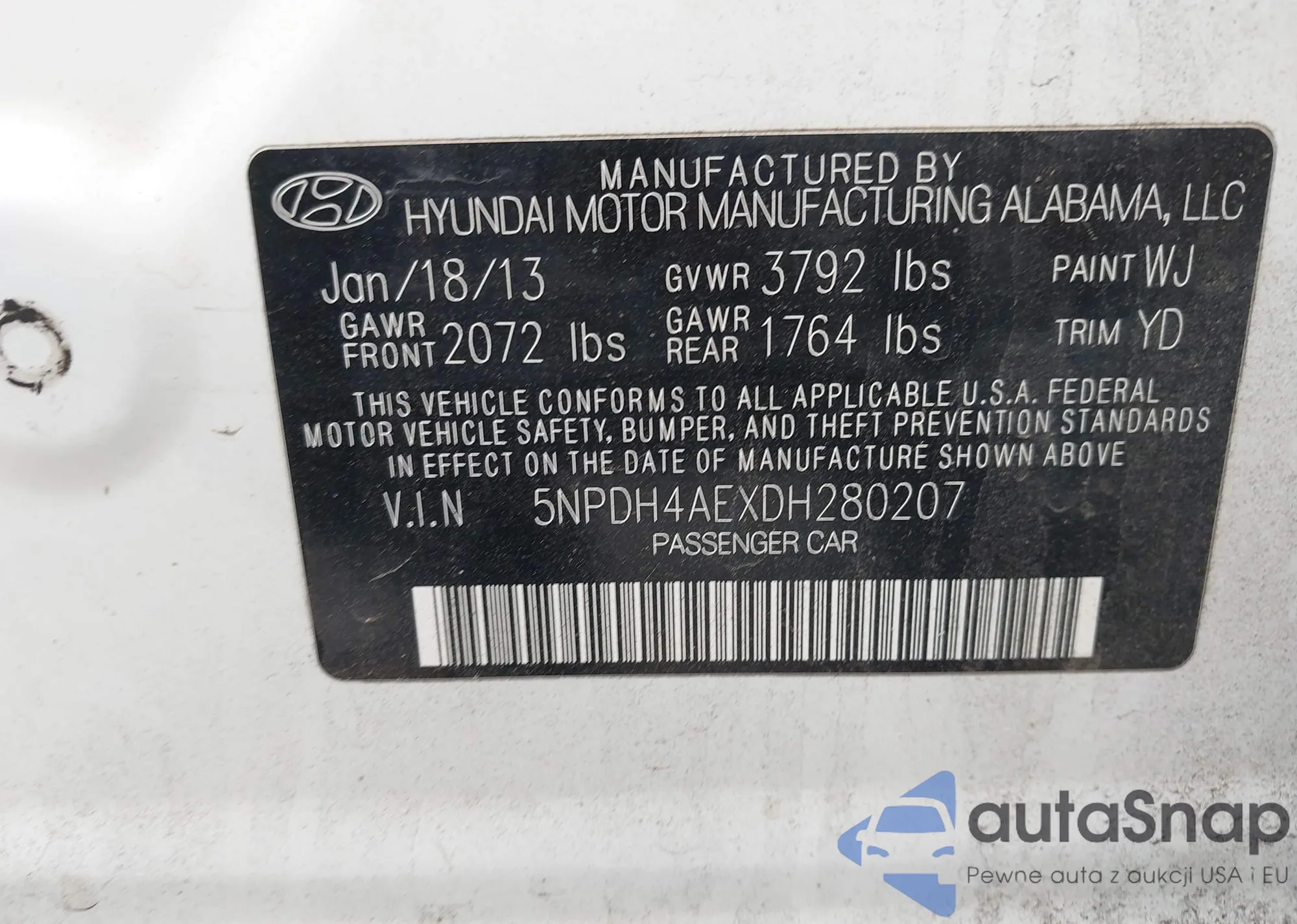 VIN: 5NPDH4AEXDH280207