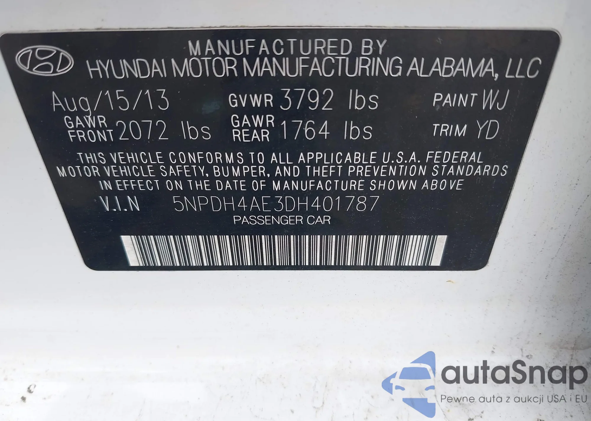 VIN: 5NPDH4AE3DH401787
