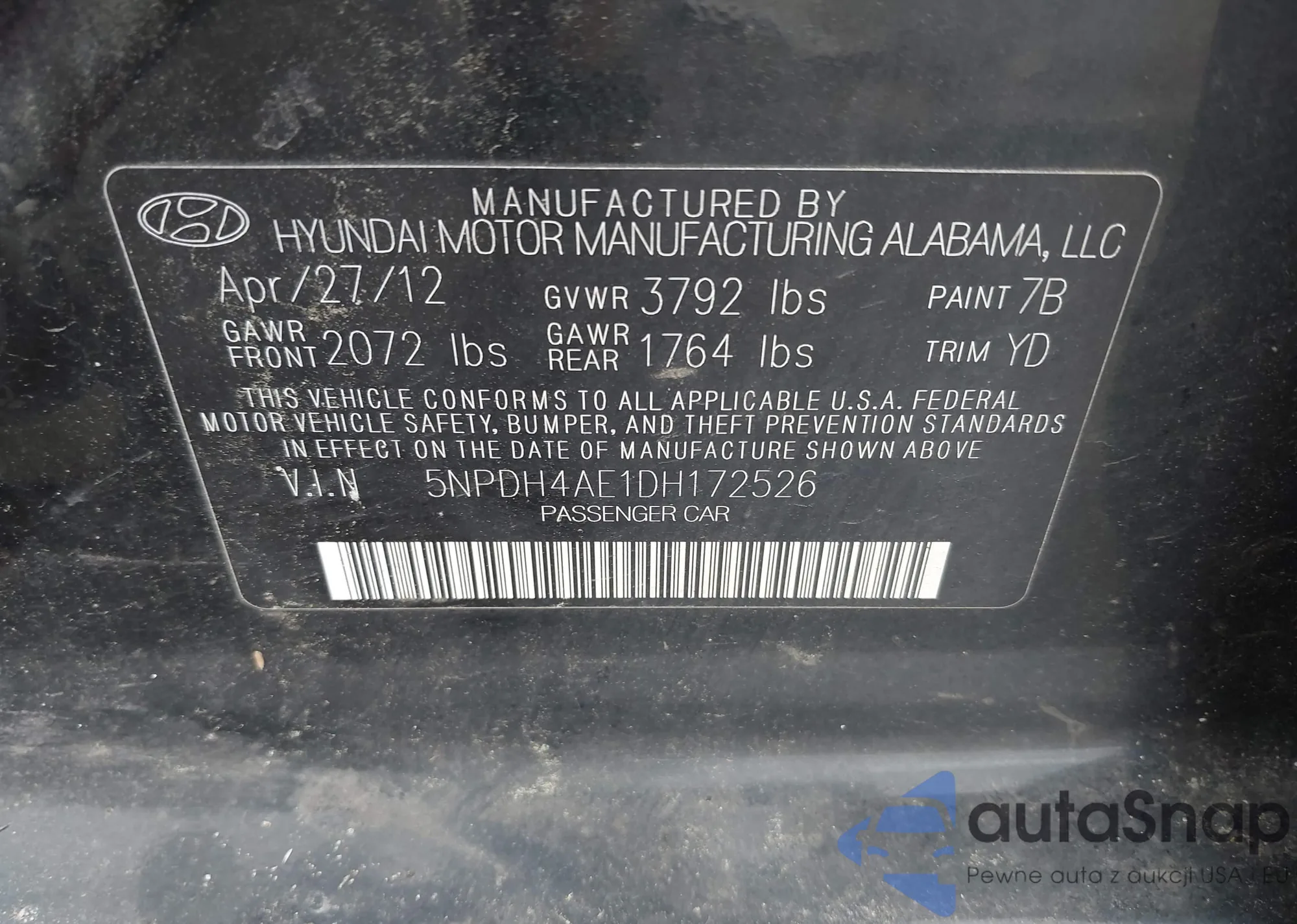 VIN: 5NPDH4AE1DH172526