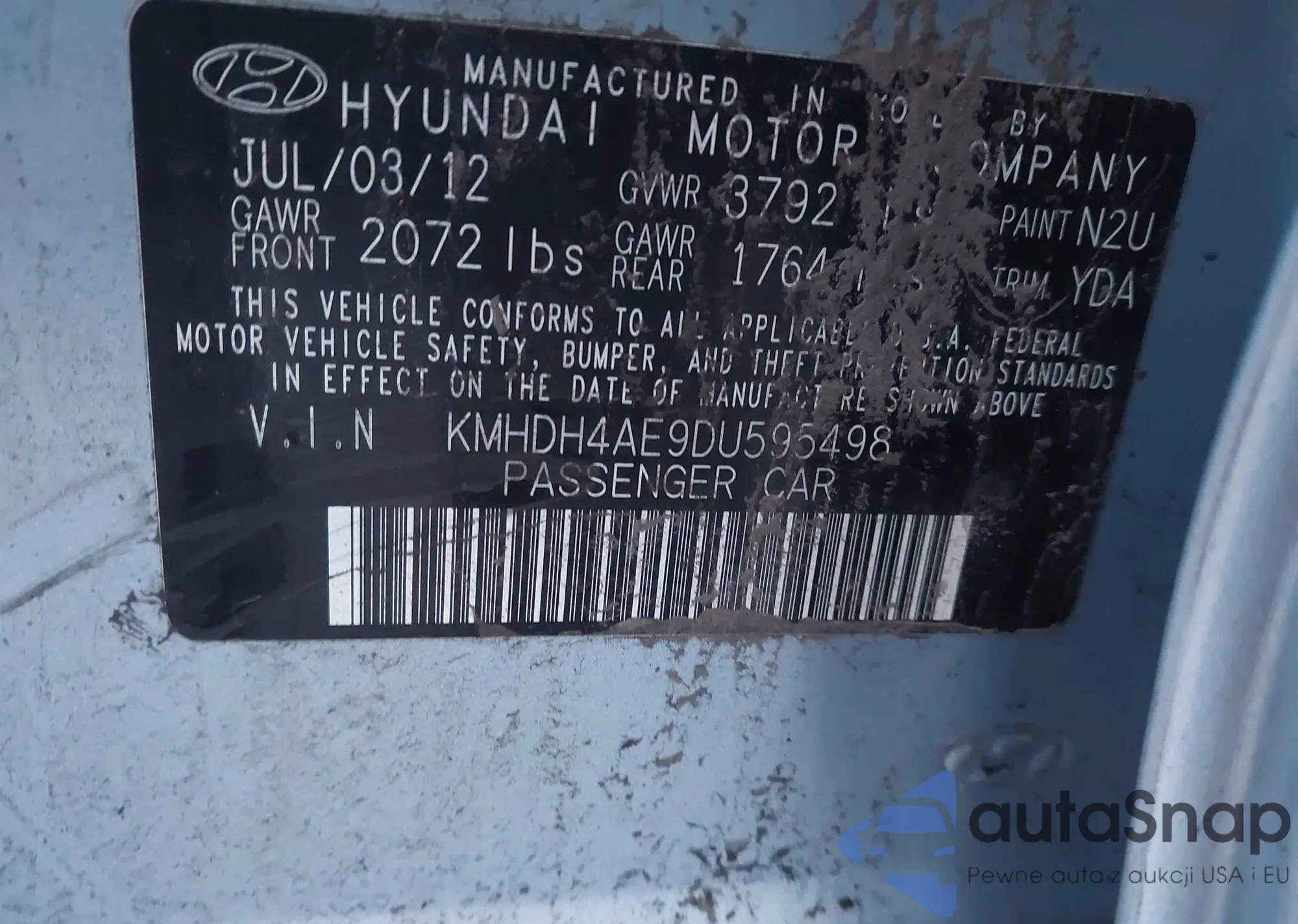VIN: KMHDH4AE9DU595498