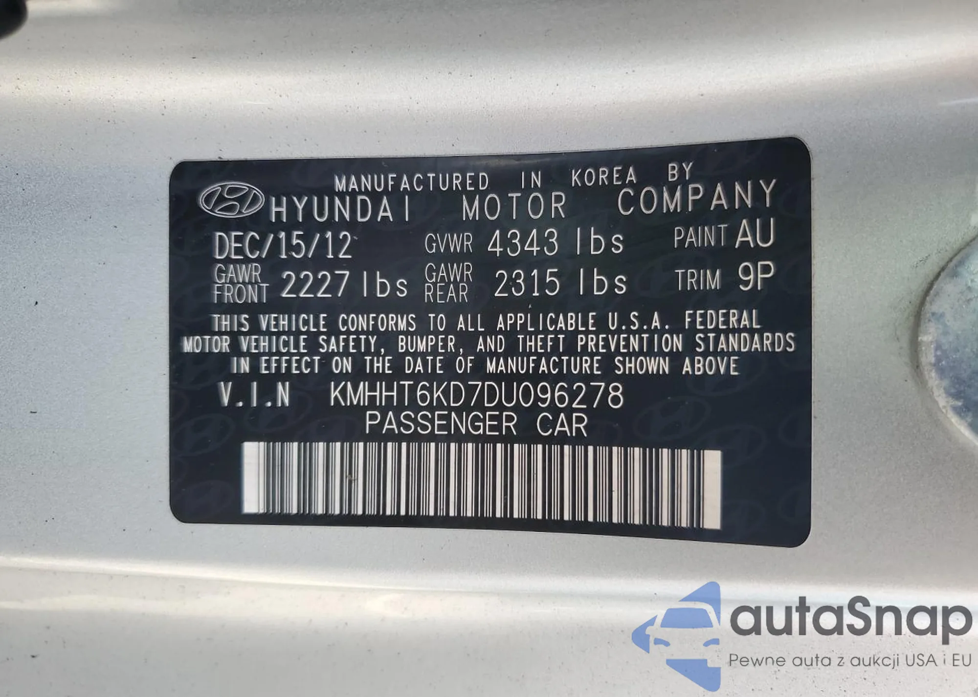 VIN: KMHHT6KD7DU096278