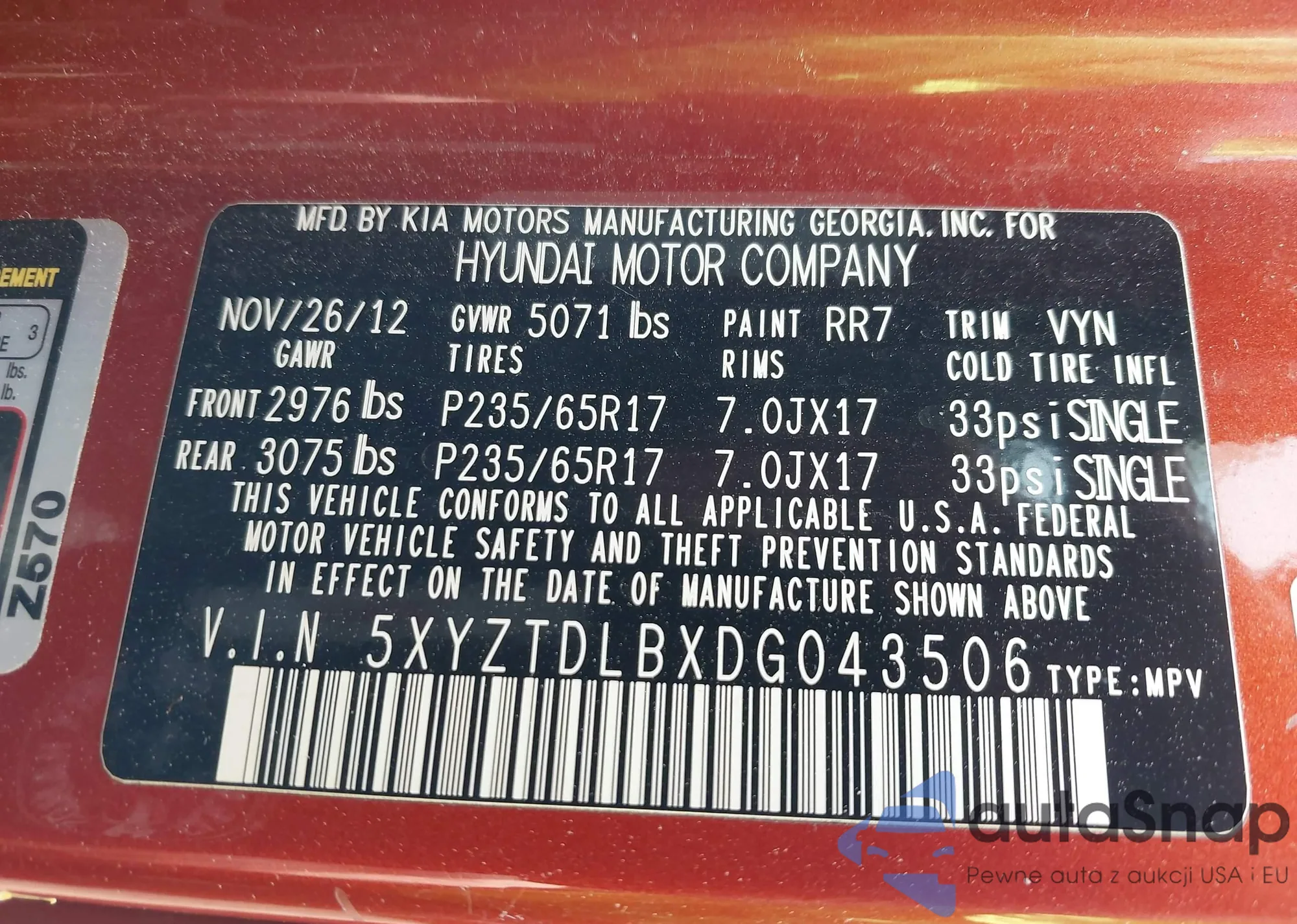 VIN: 5XYZTDLBXDG043506