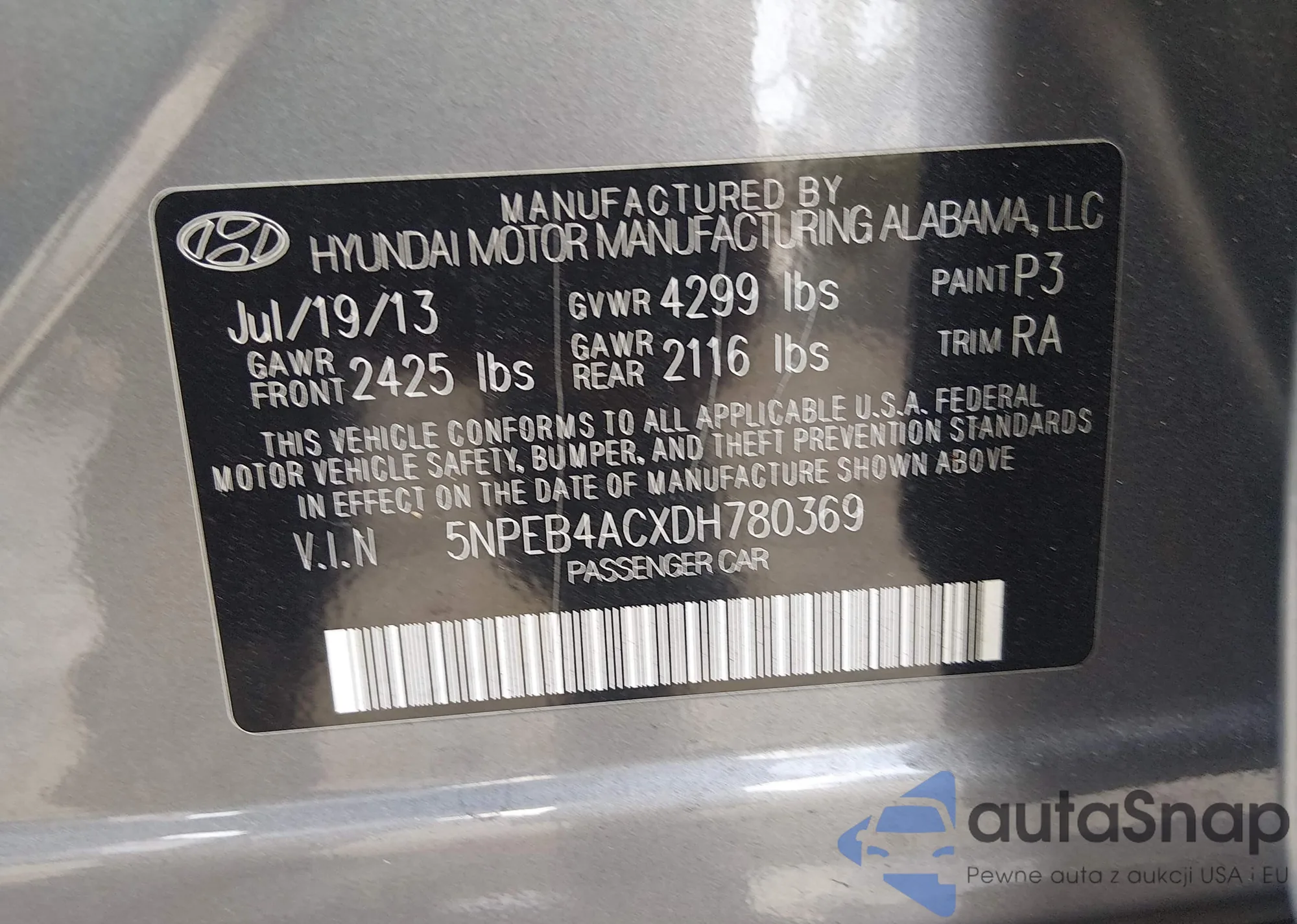 The car Hyundai Sonata 2013 (VIN 5NPEB4ACXDH780369) is sold by an unverified seller. We recommend checking the Carfax report and confirming registration possibilities before purchase.