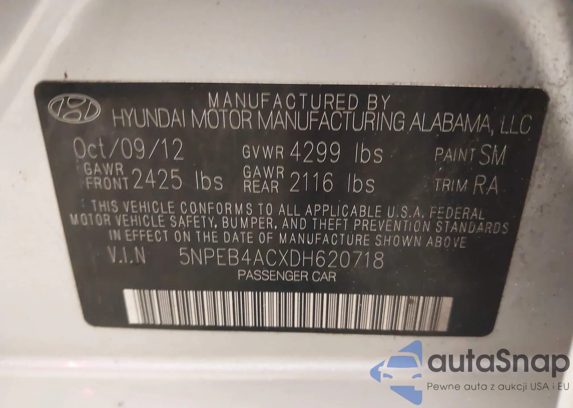VIN: 5NPEB4ACXDH620718