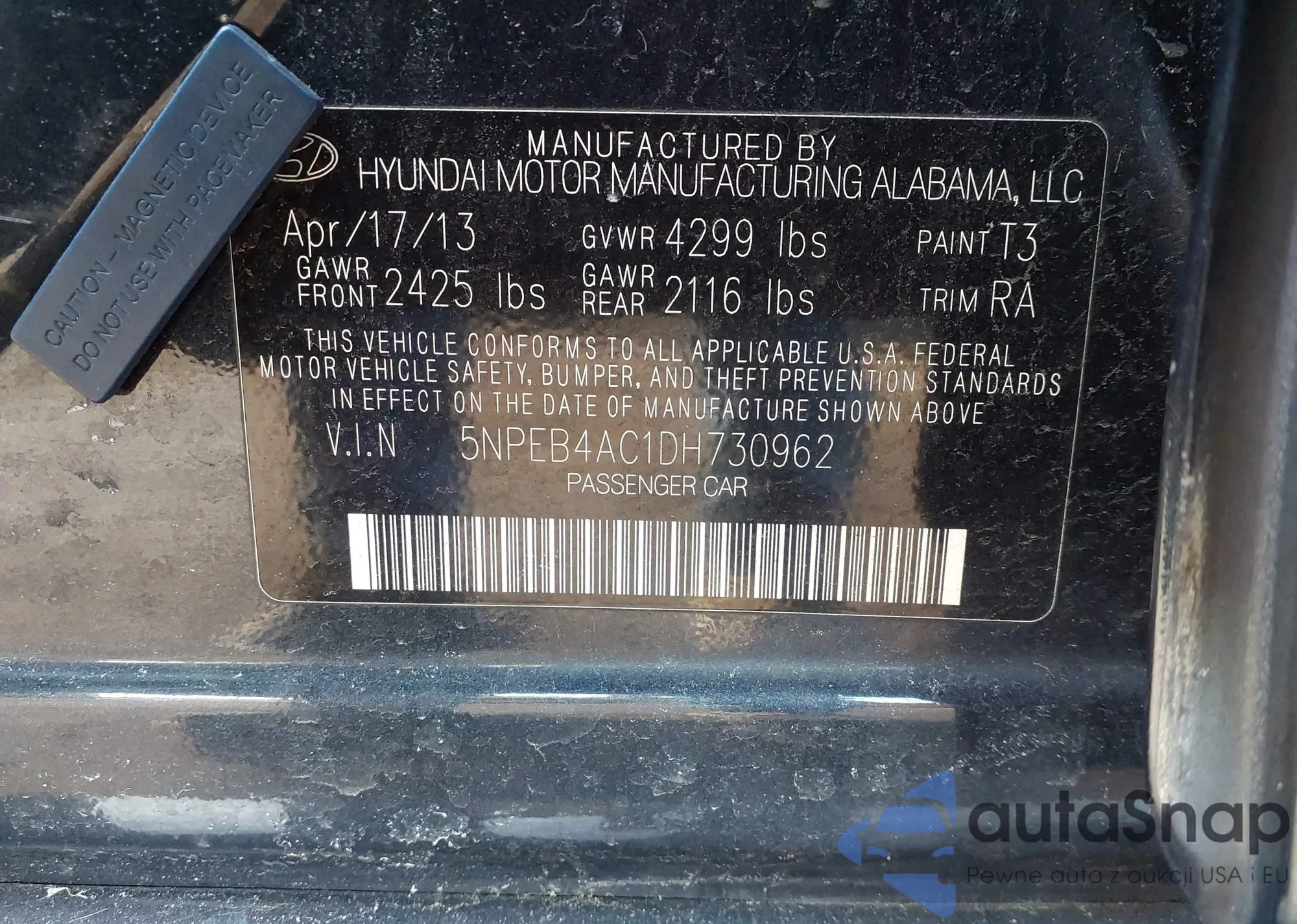 • VIN: 5NPEB4AC1DH730962