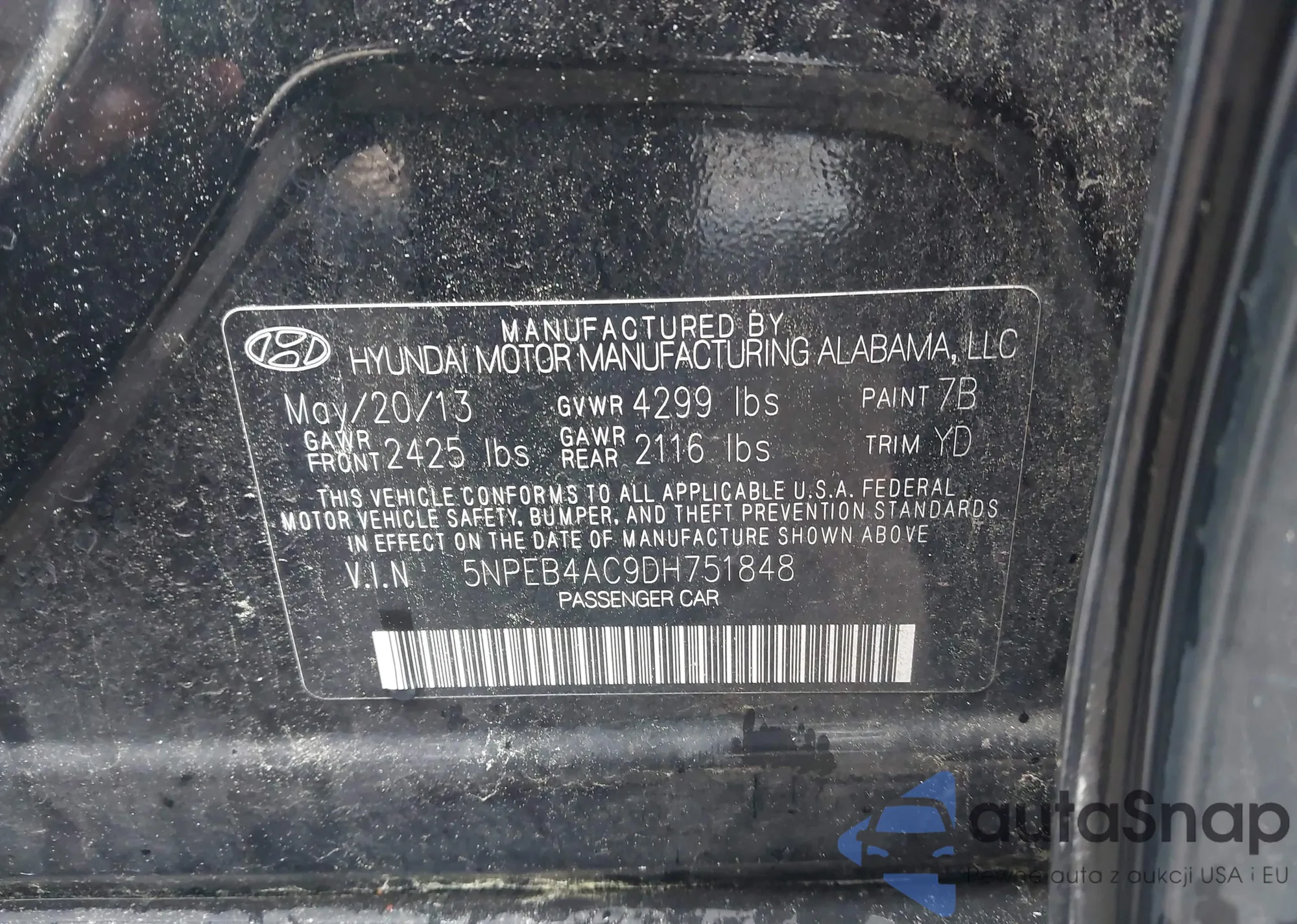 VIN: 5NPEB4AC9DH751848