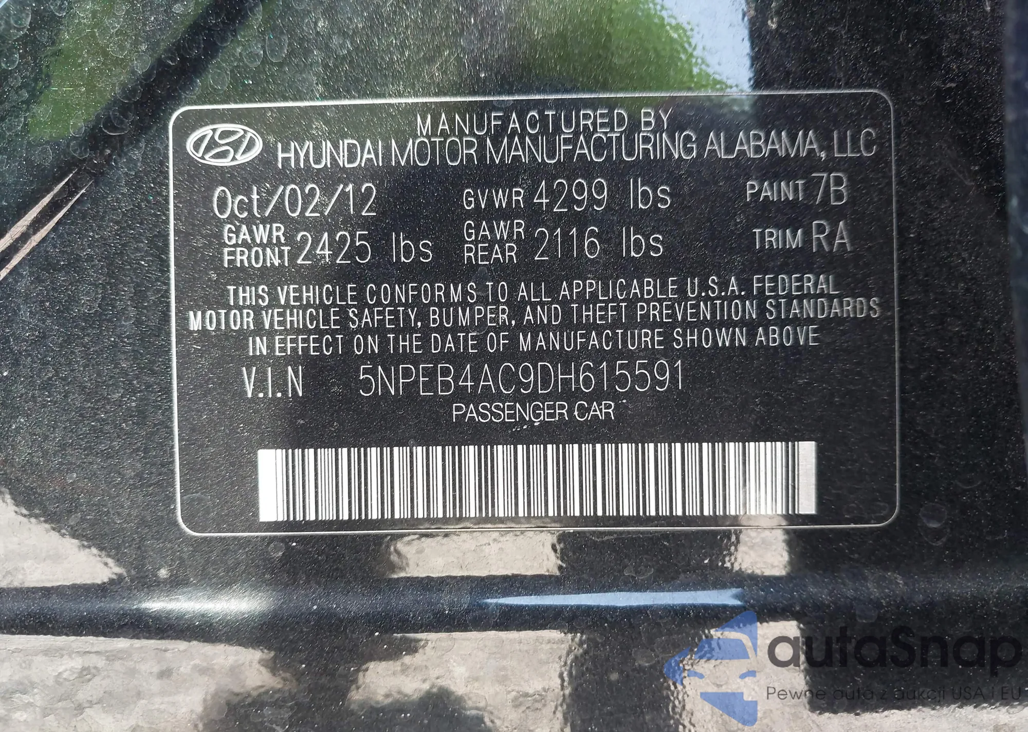 VIN: 5NPEB4AC9DH615591