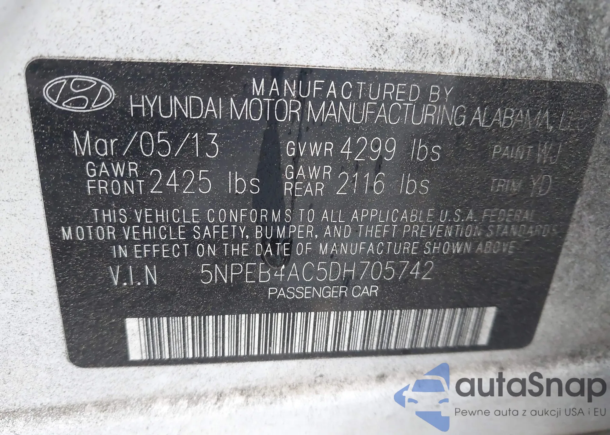 VIN: 5NPEB4AC5DH705742