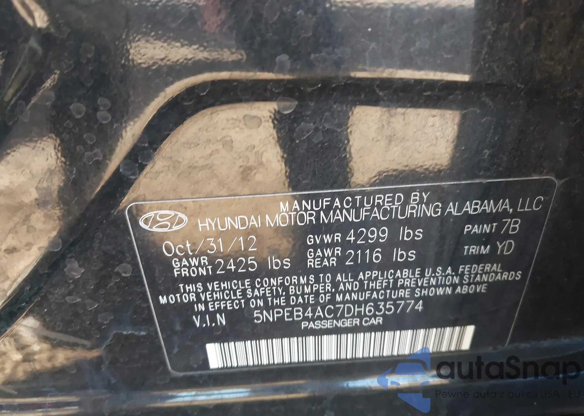 VIN: 5NPEB4AC7DH635774