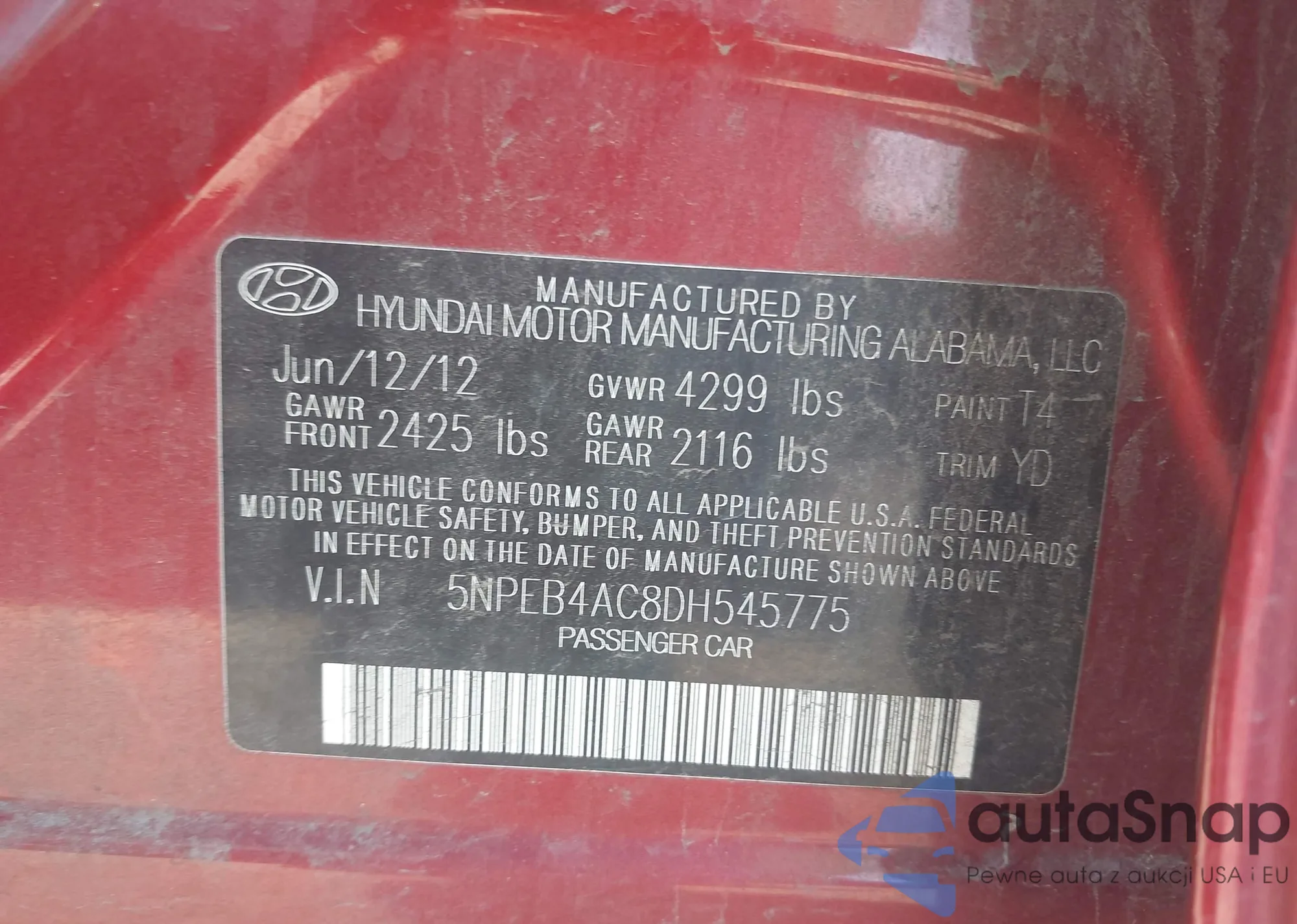 • VIN: 5NPEB4AC8DH545775