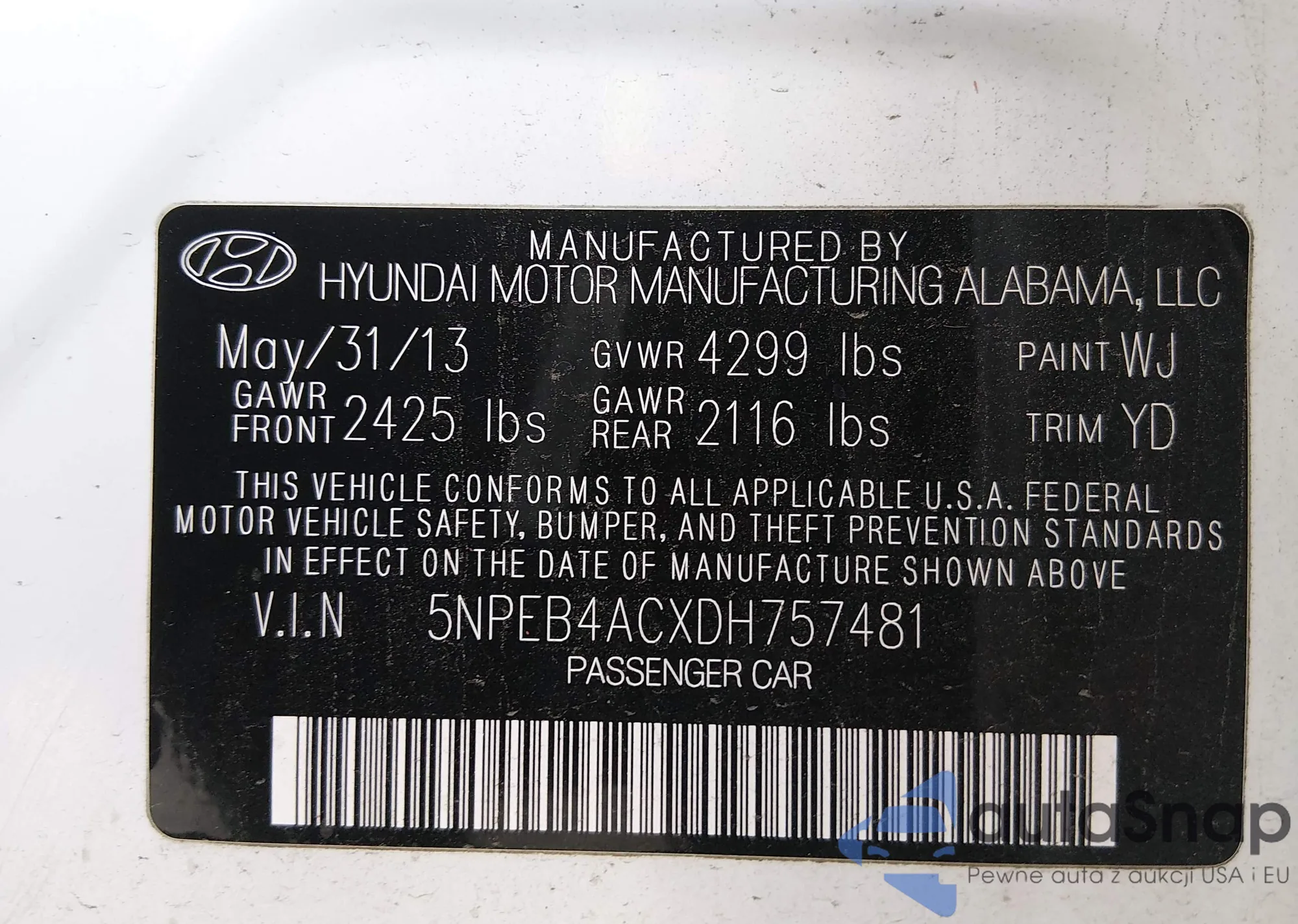 The car Hyundai Sonata 2013 (VIN 5NPEB4ACXDH757481) is sold by an unverified seller. We recommend checking the Carfax report and confirming registration possibilities before purchase.