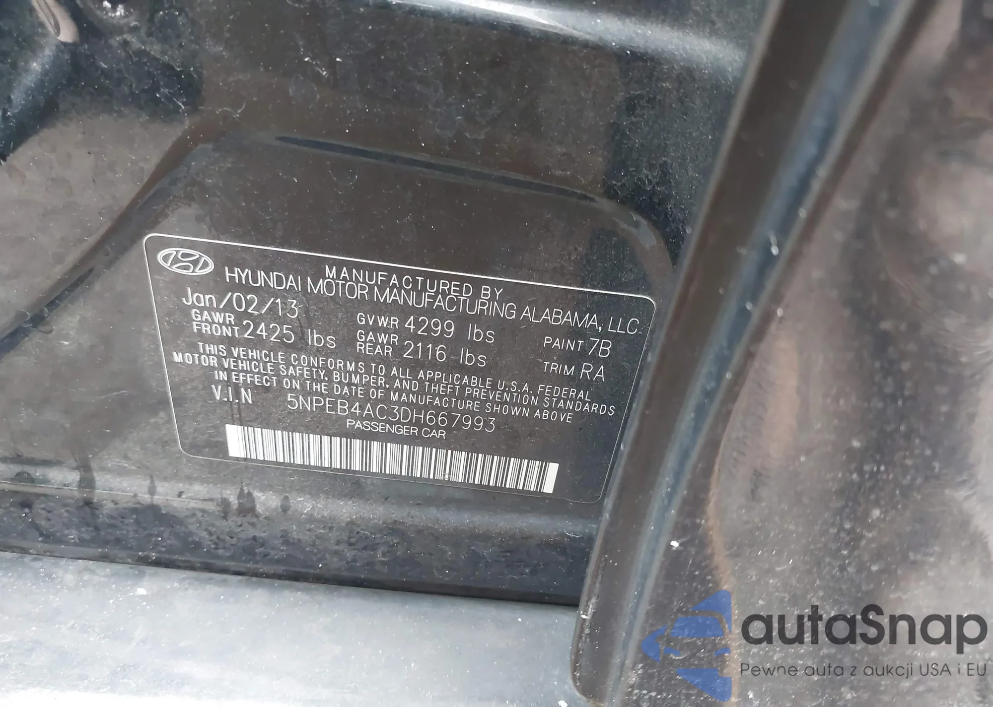 • VIN: 5NPEB4AC3DH667993