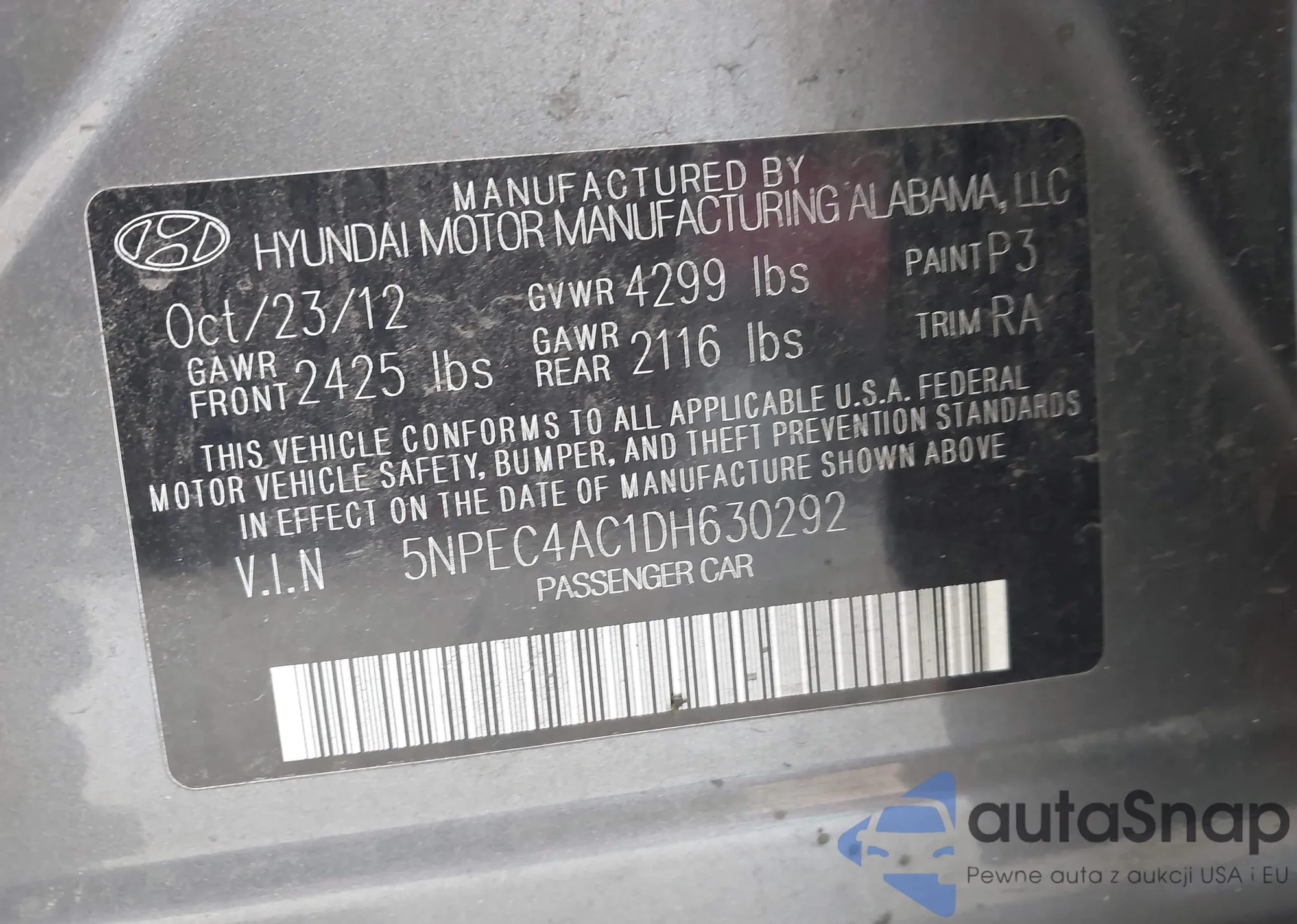 VIN: 5NPEC4AC1DH630292