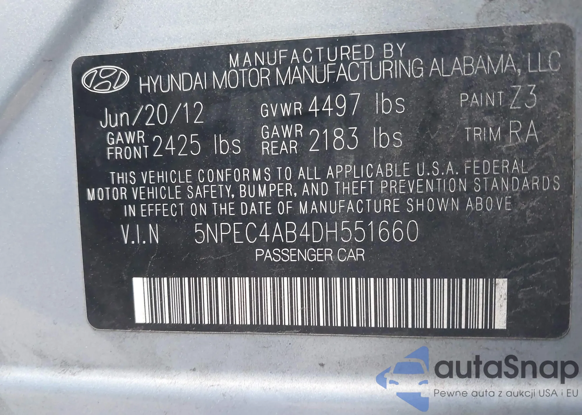 The car Hyundai Sonata 2013 (VIN 5NPEC4AB4DH551660) has not been auctioned before. The documents are clean, and the mileage matches or is below the market average. Sold by an insurance company – we recommend purchase. Delivery to the port will take approx. 6–8 weeks.