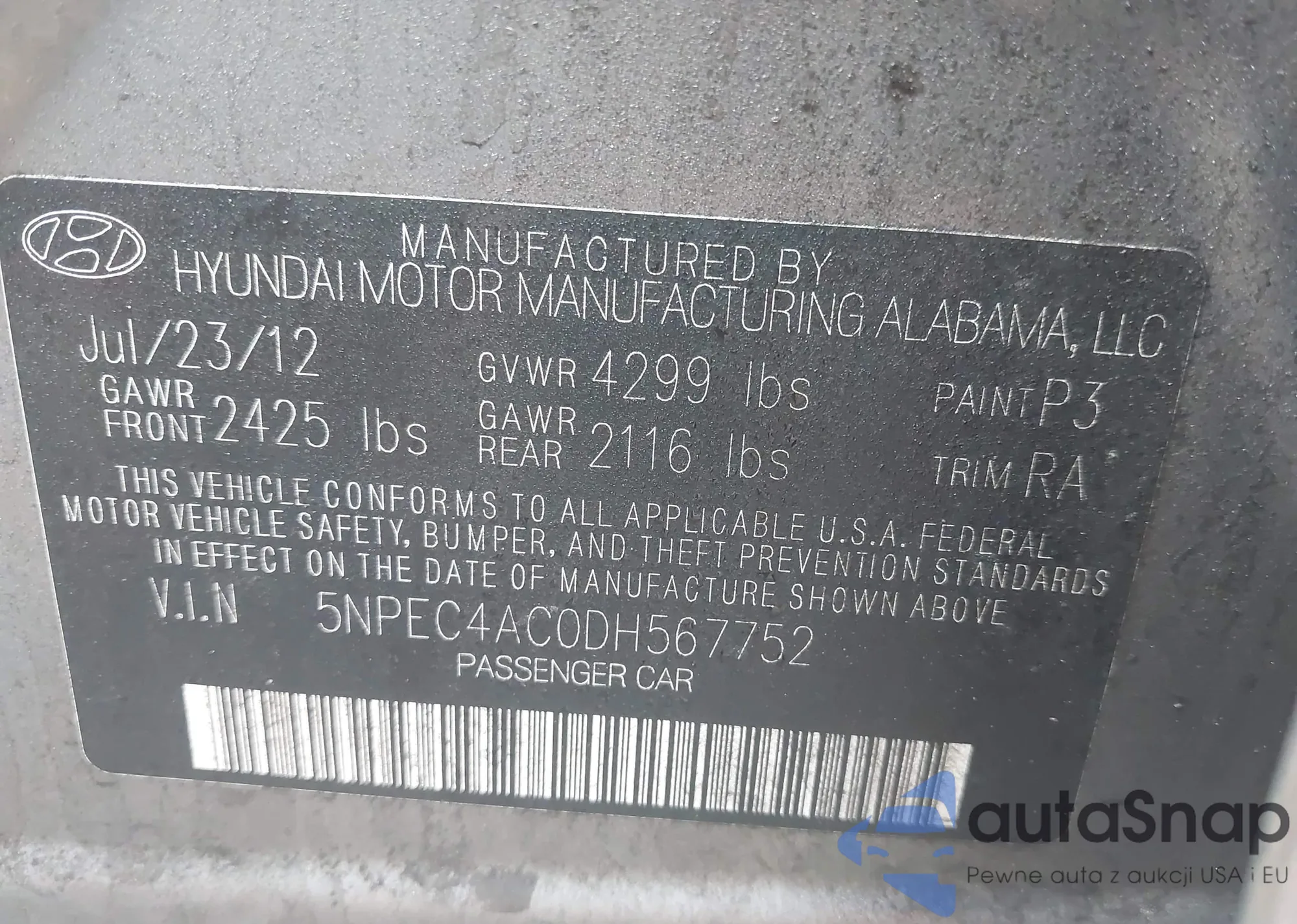 VIN: 5NPEC4AC0DH567752