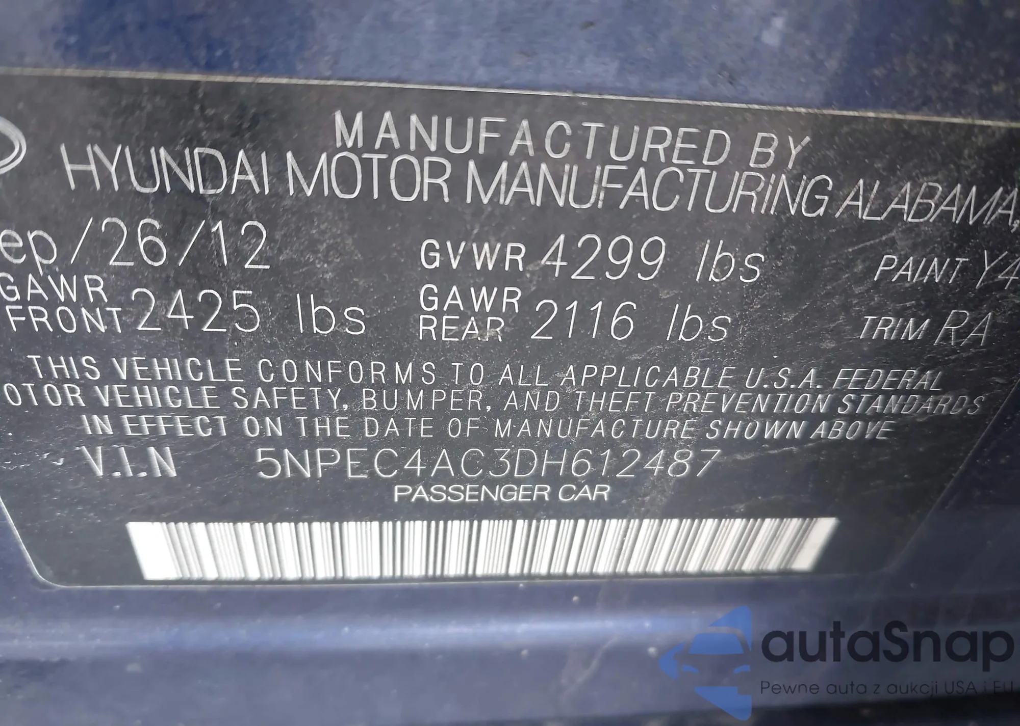 VIN: 5NPEC4AC3DH612487