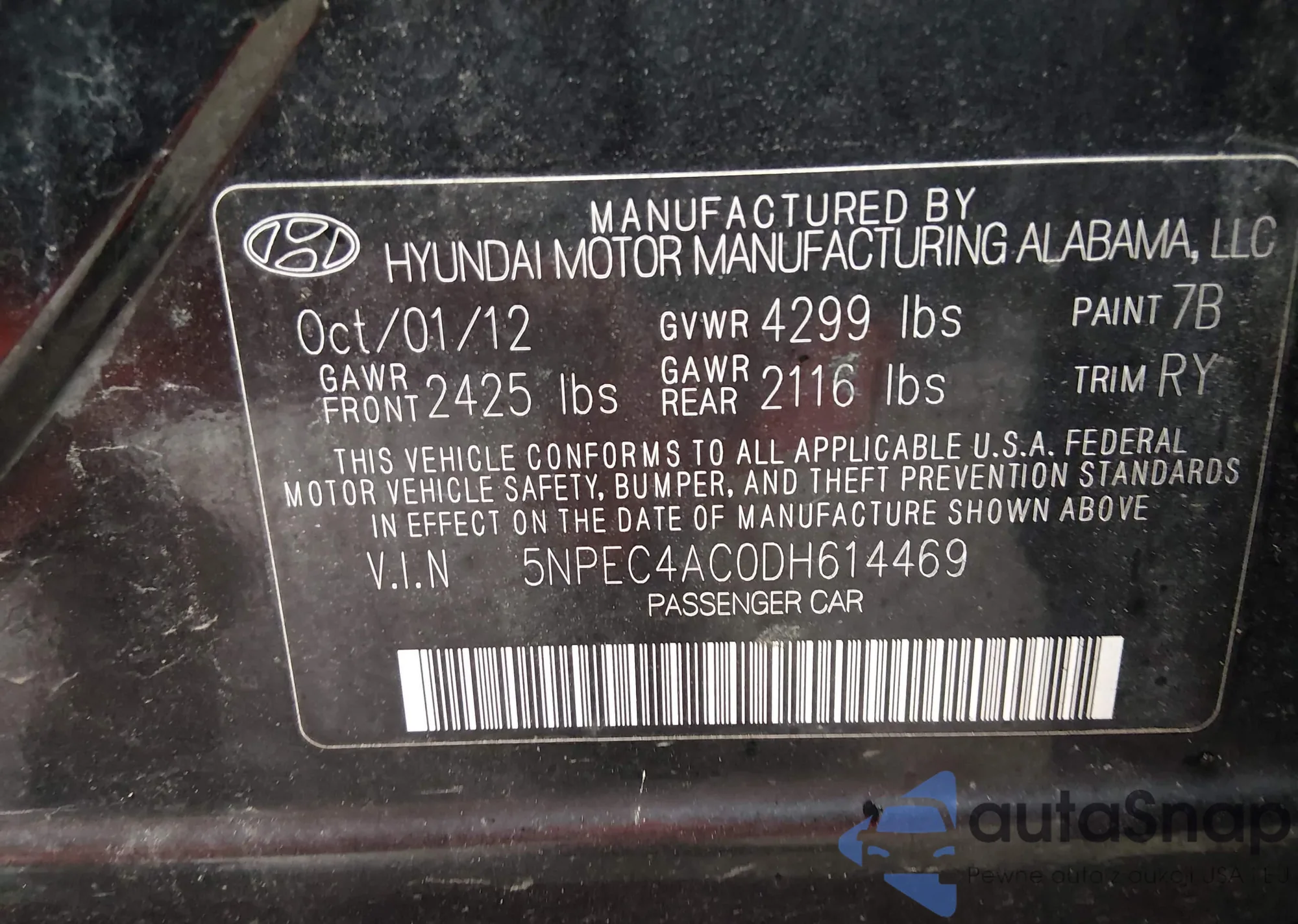 • VIN: 5NPEC4AC0DH614469