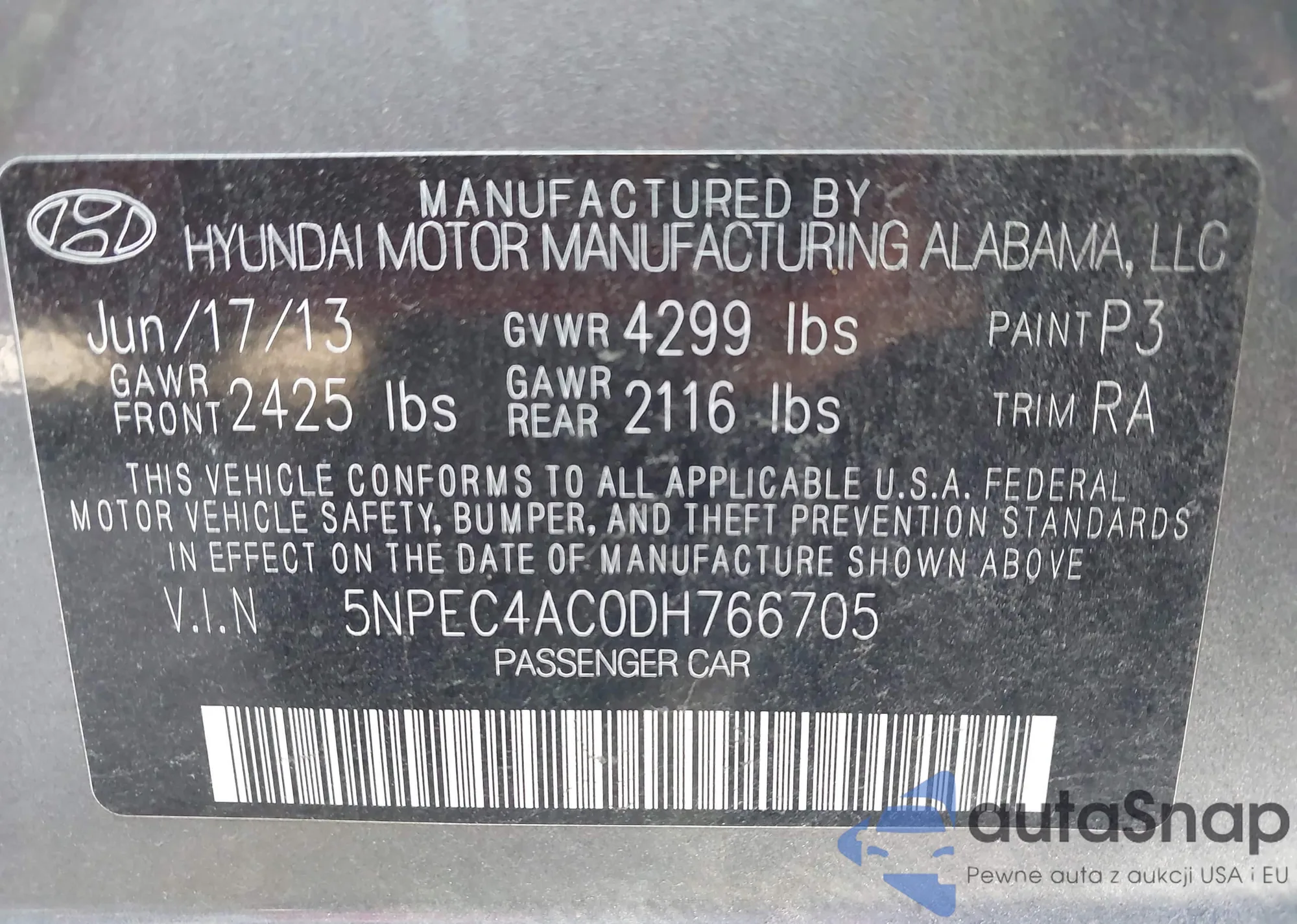 VIN: 5NPEC4AC0DH766705
