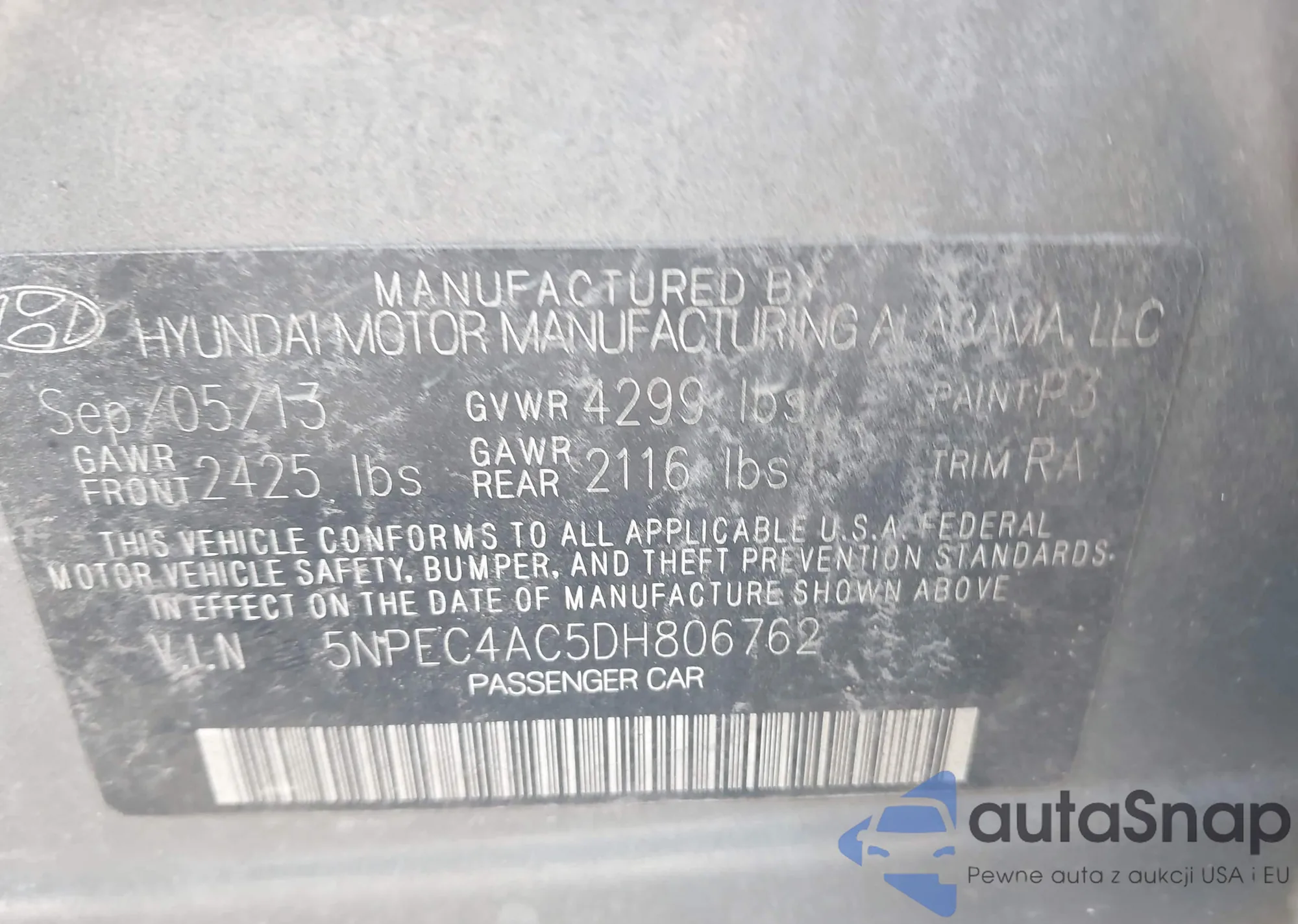 VIN: 5NPEC4AC5DH806762