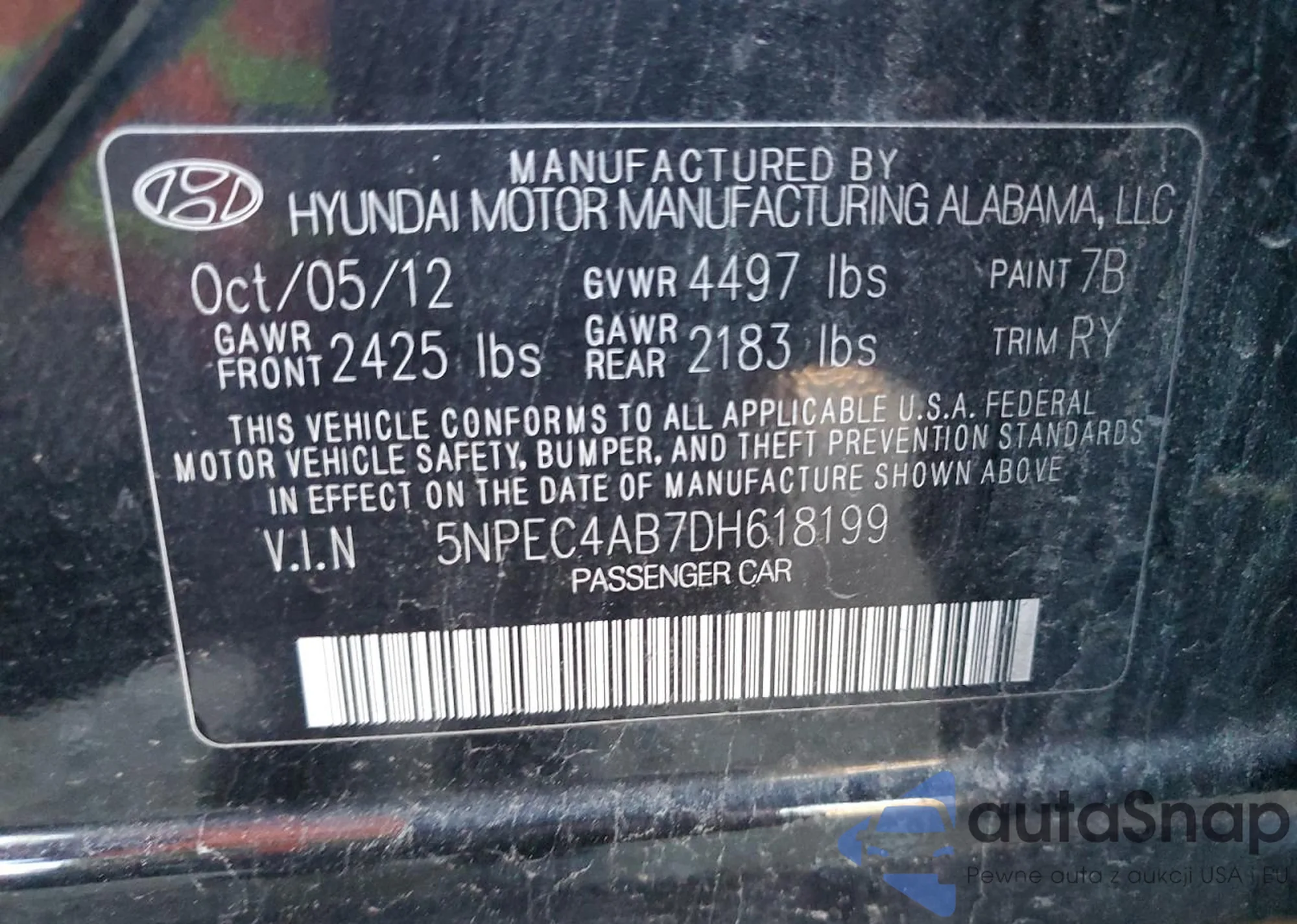 The car Hyundai Sonata 2013 (VIN 5NPEC4AB7DH618199) is sold by an unverified seller. We recommend checking the Carfax report and confirming registration possibilities before purchase.