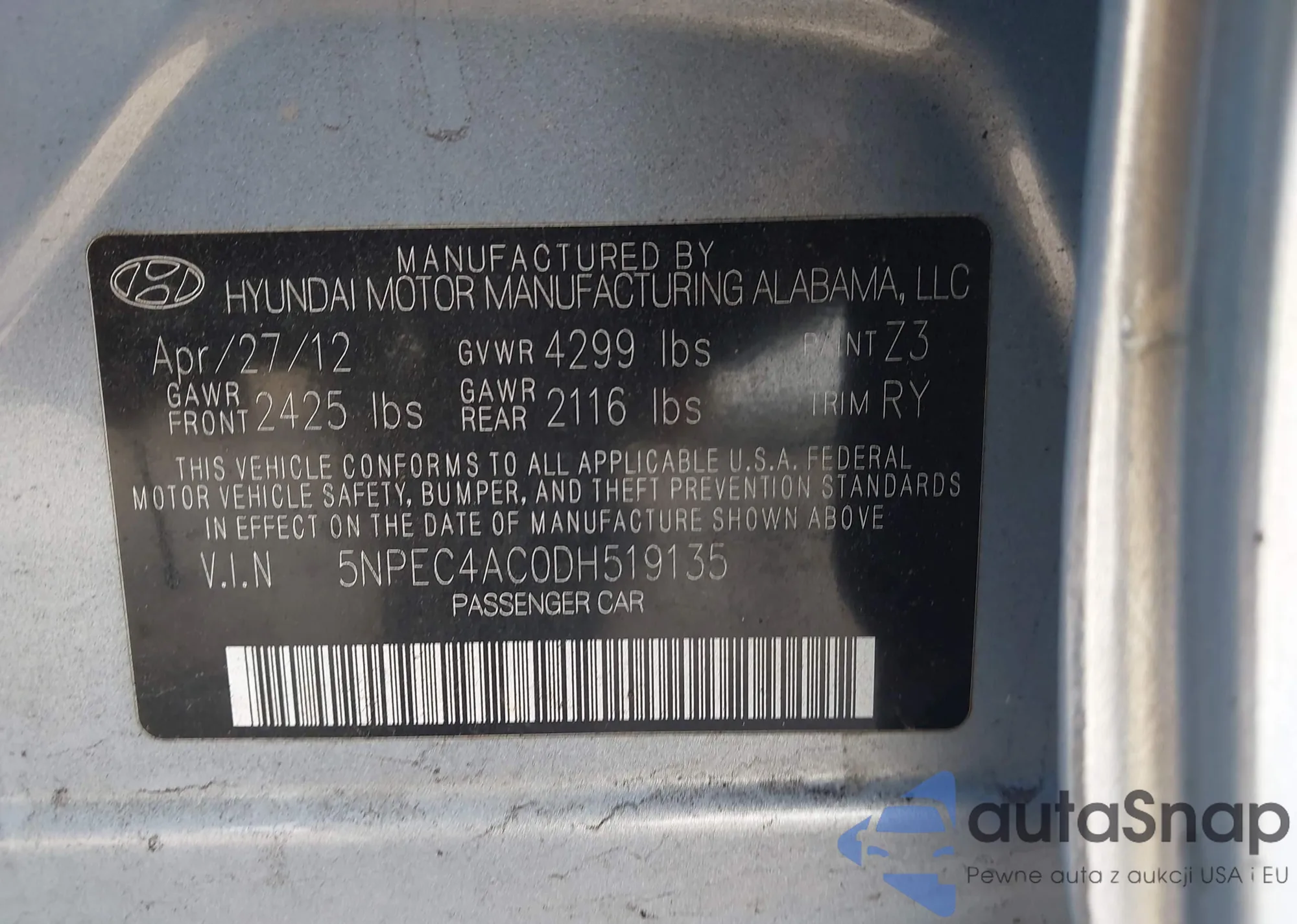 VIN: 5NPEC4AC0DH519135