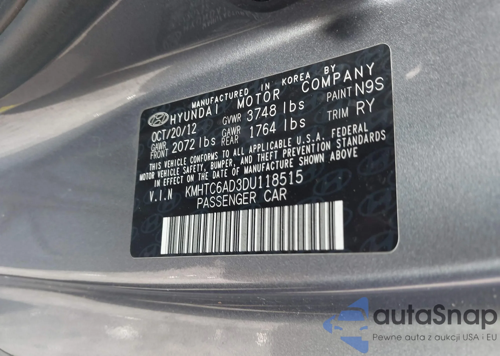 VIN: KMHTC6AD3DU118515