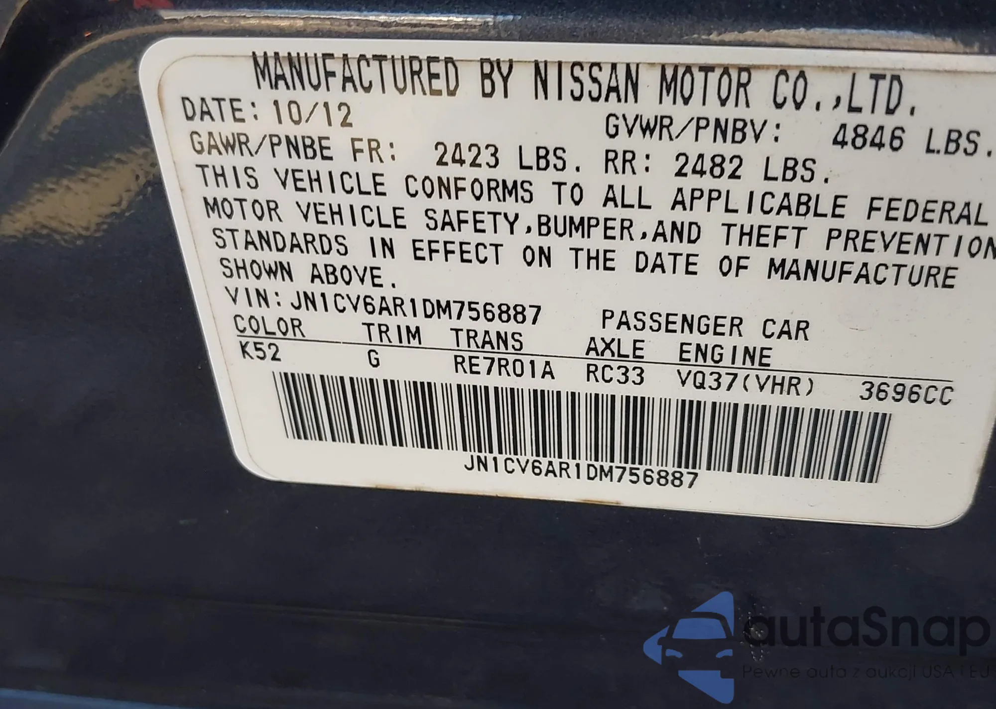VIN: JN1CV6AR1DM756887