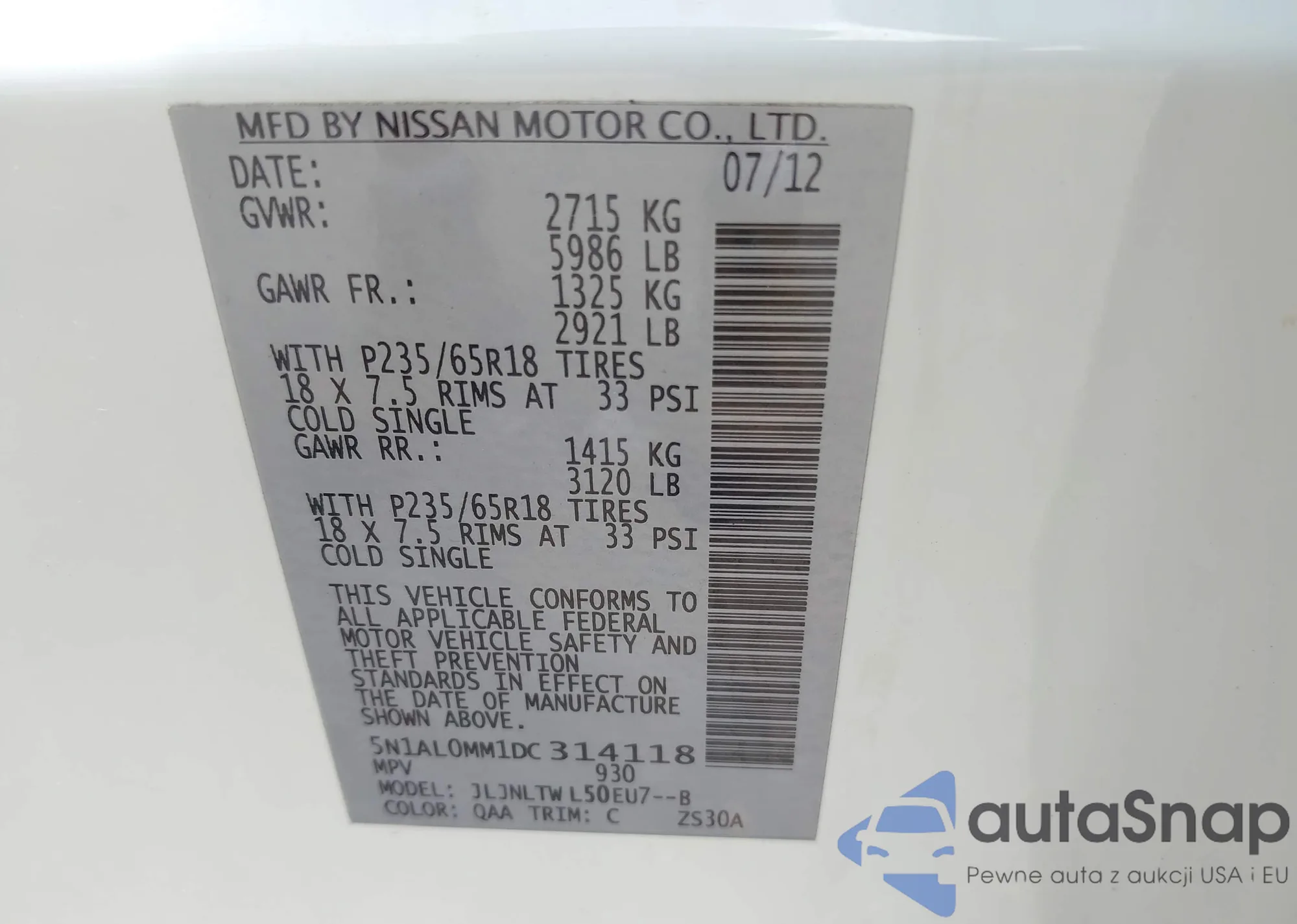 VIN: 5N1AL0MM1DC314118