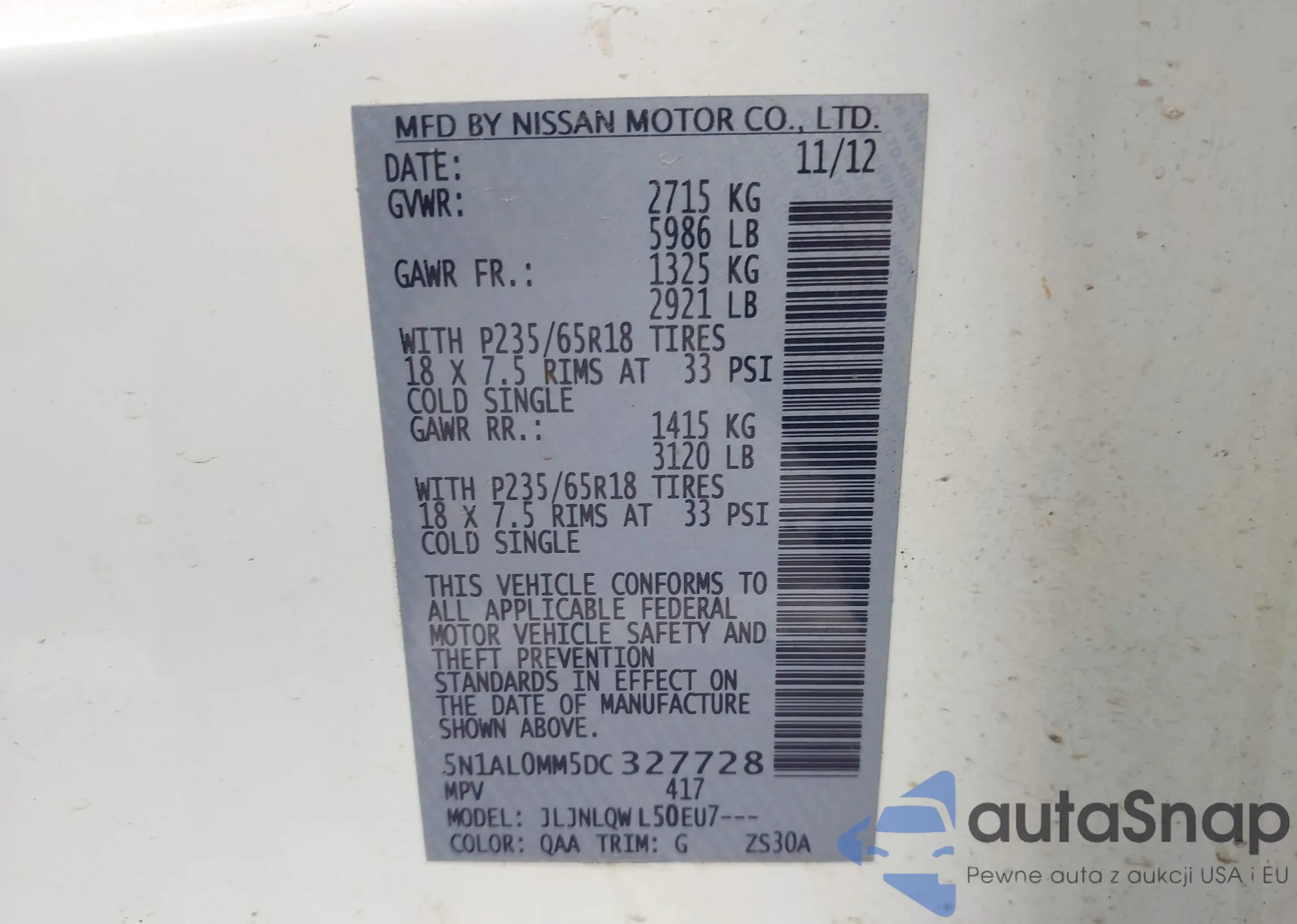 VIN: 5N1AL0MM5DC327728