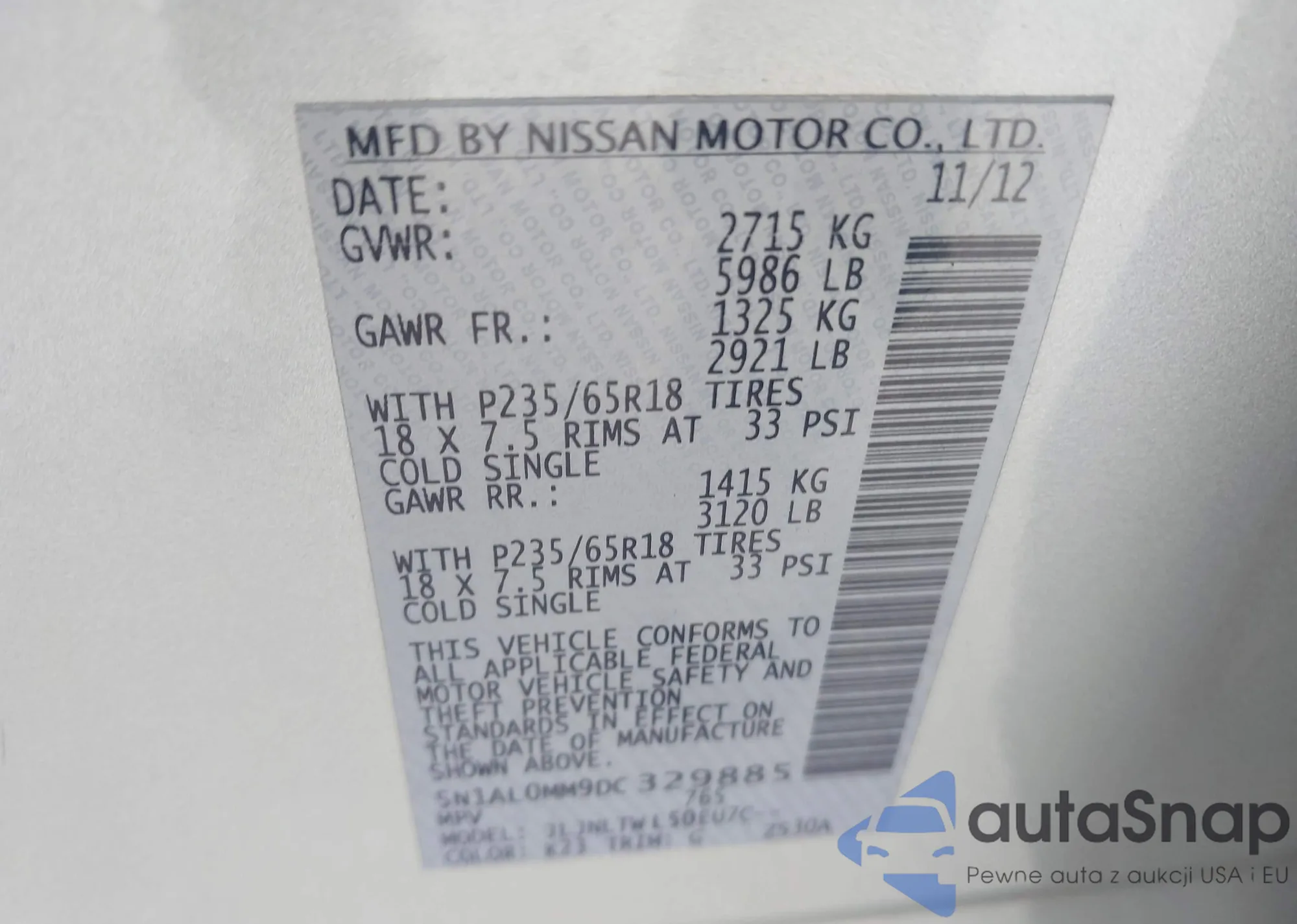 VIN: 5N1AL0MM9DC329885
