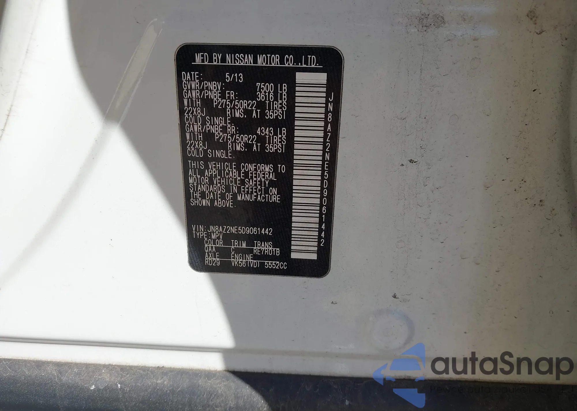 VIN: JN8AZ2NE5D9061442