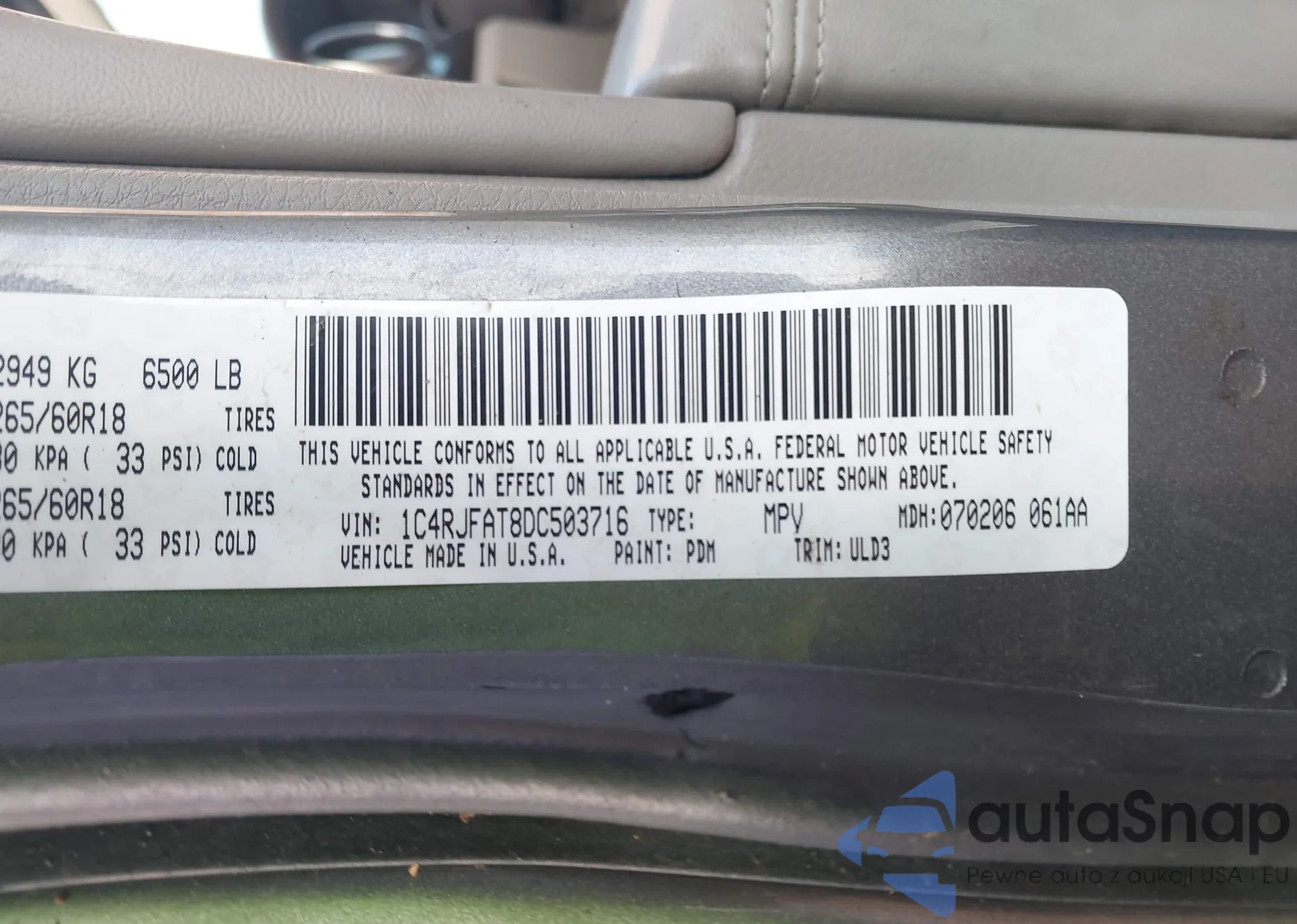 VIN: 1C4RJFAT8DC503716