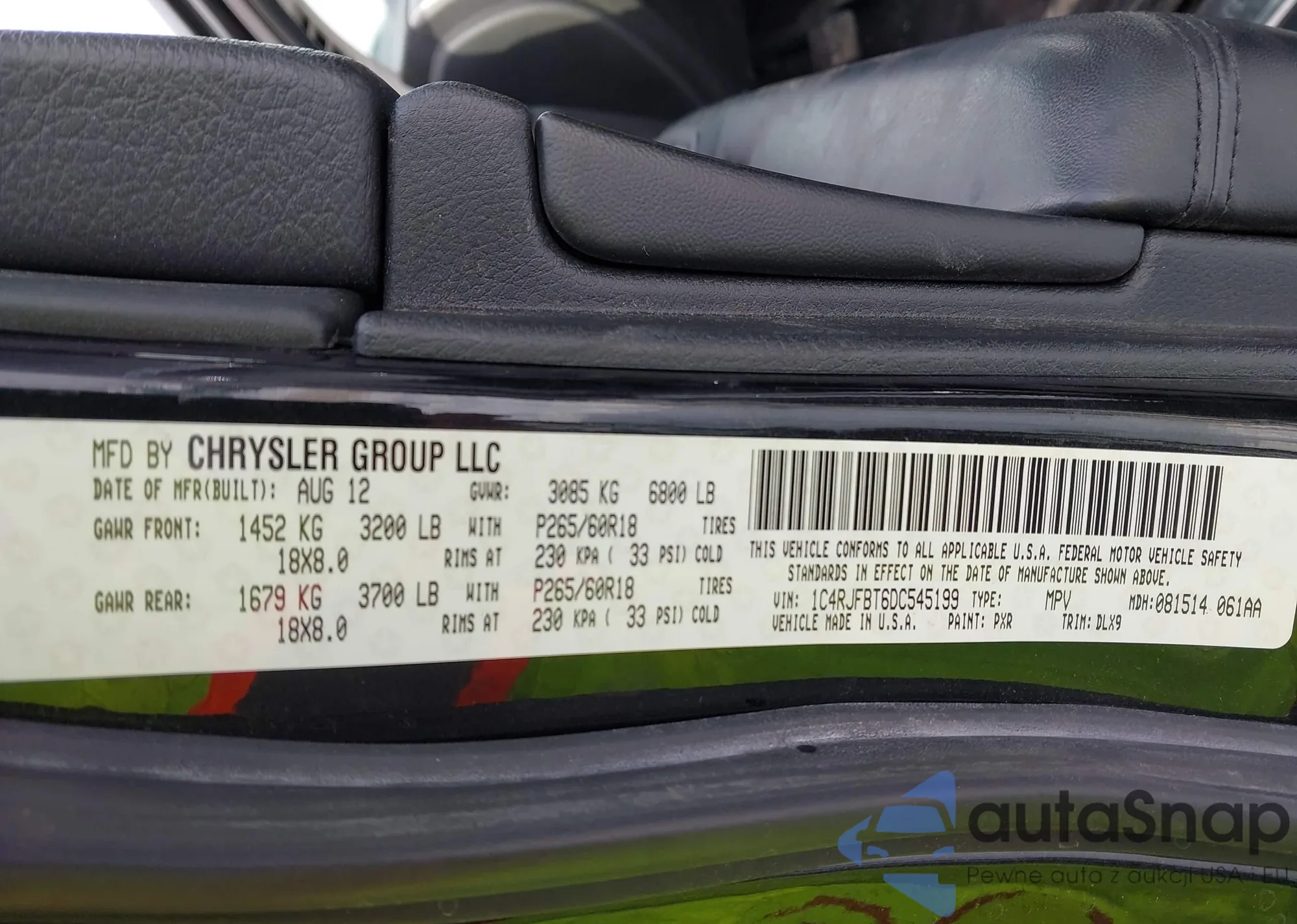 The car Jeep Grand Cherokee 2013 (VIN 1C4RJFBT6DC545199) has not been auctioned before. The documents are clean, and the mileage matches or is below the market average. Sold by an insurance company – we recommend purchase. Delivery to the port will take approx. 6–8 weeks.