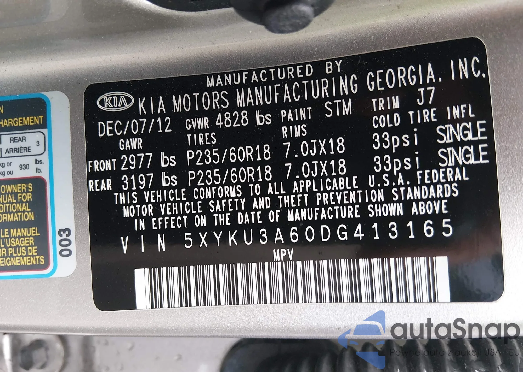 • VIN: 5XYKU3A60DG413165