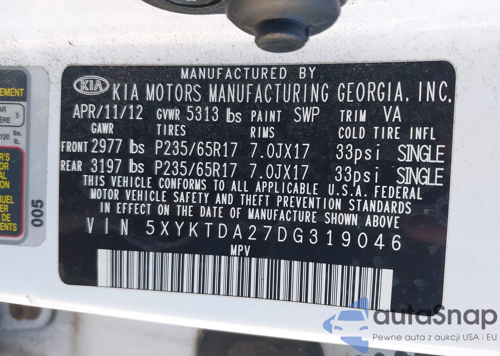 VIN: 5XYKTDA27DG319046