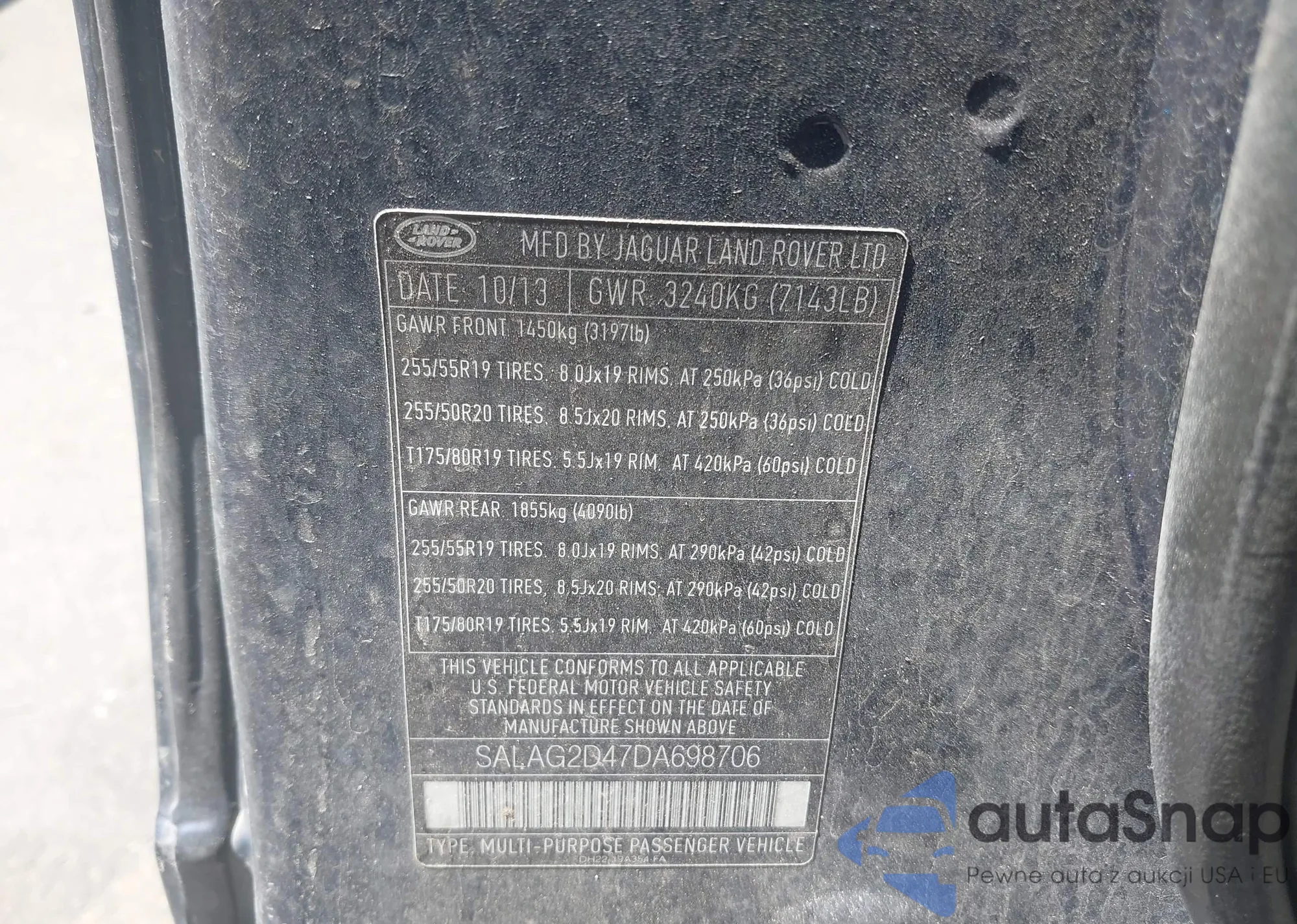 VIN: SALAG2D47DA698706