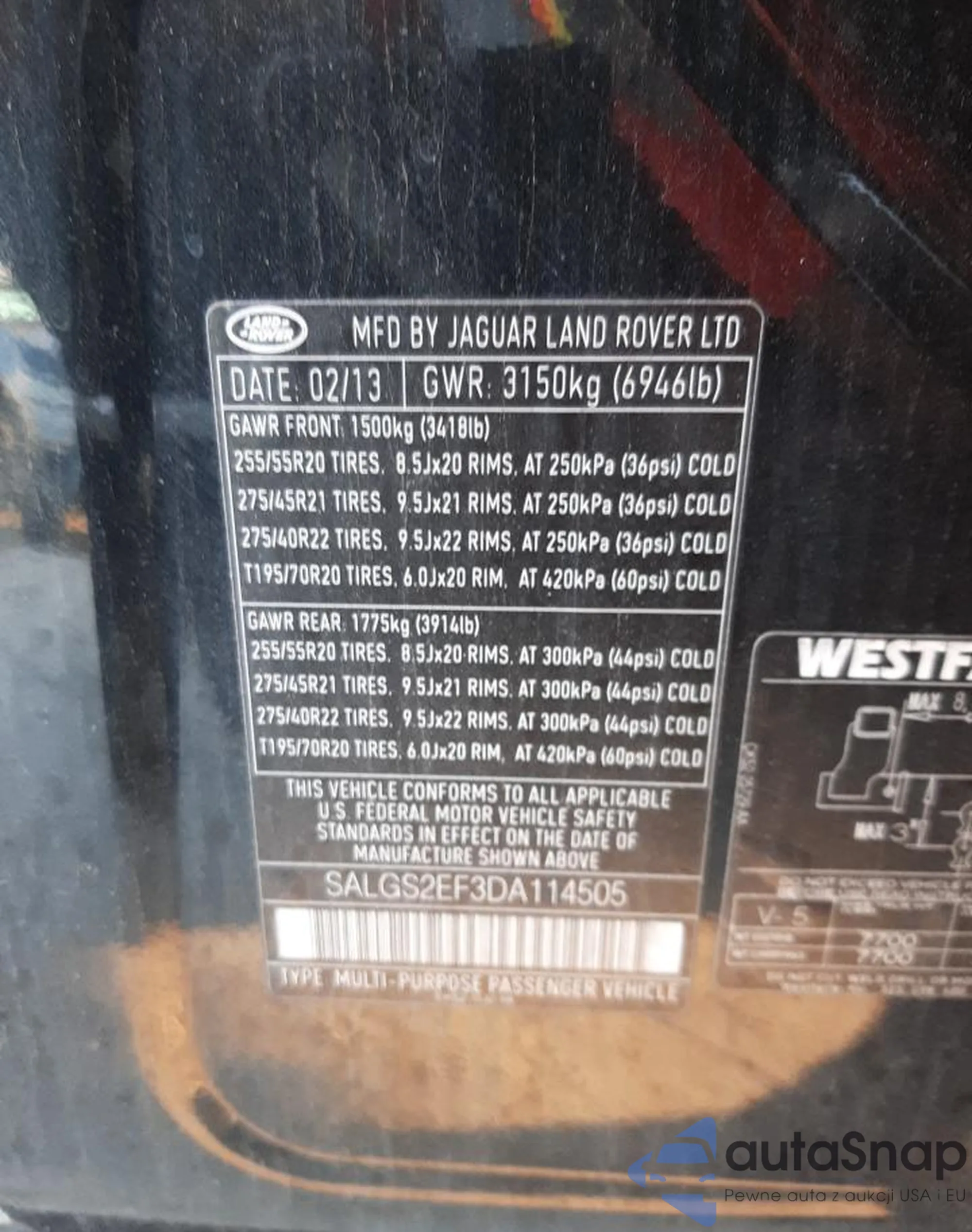 • VIN: SALGS2EF3DA114505