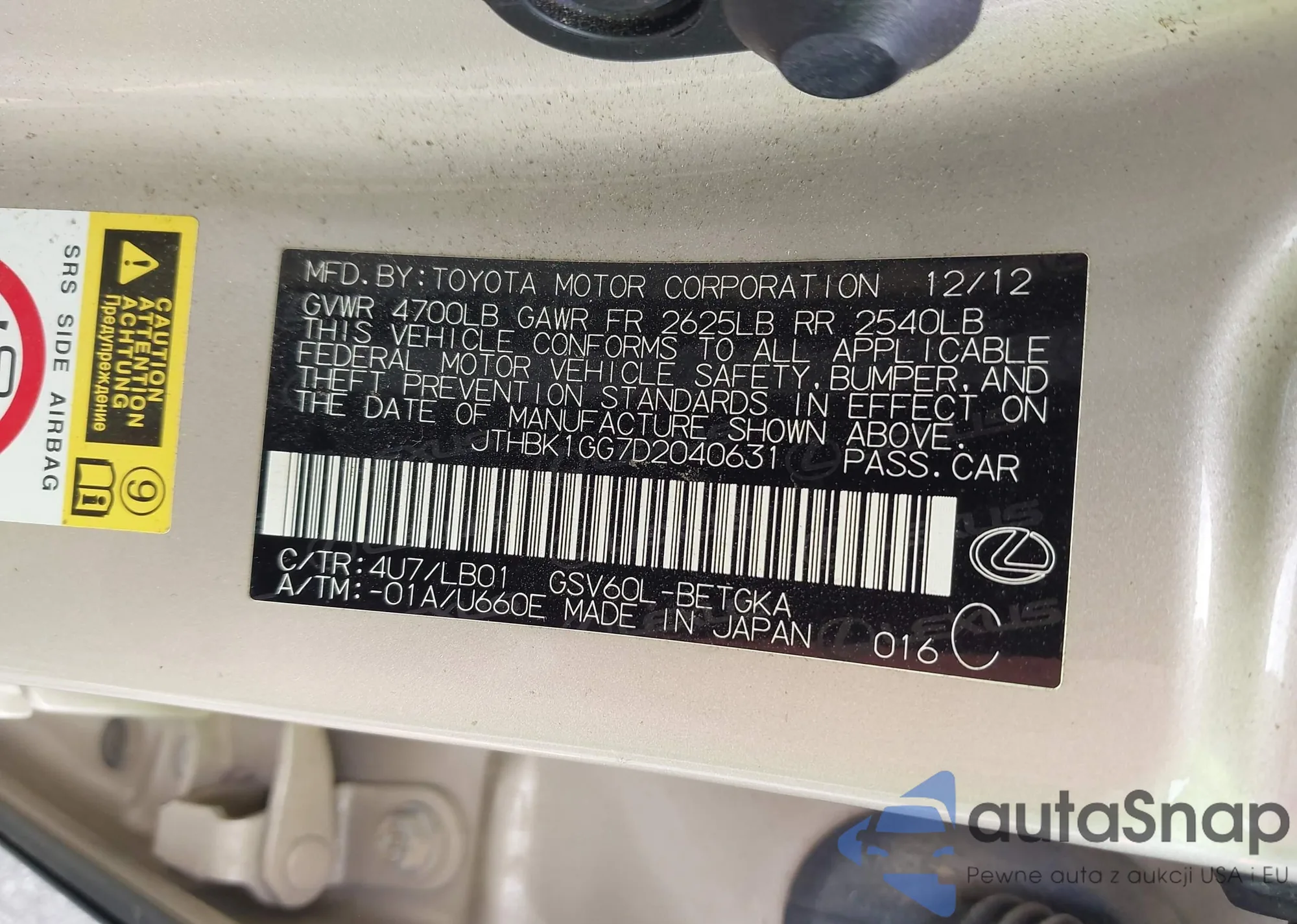 VIN: JTHBK1GG7D2040631