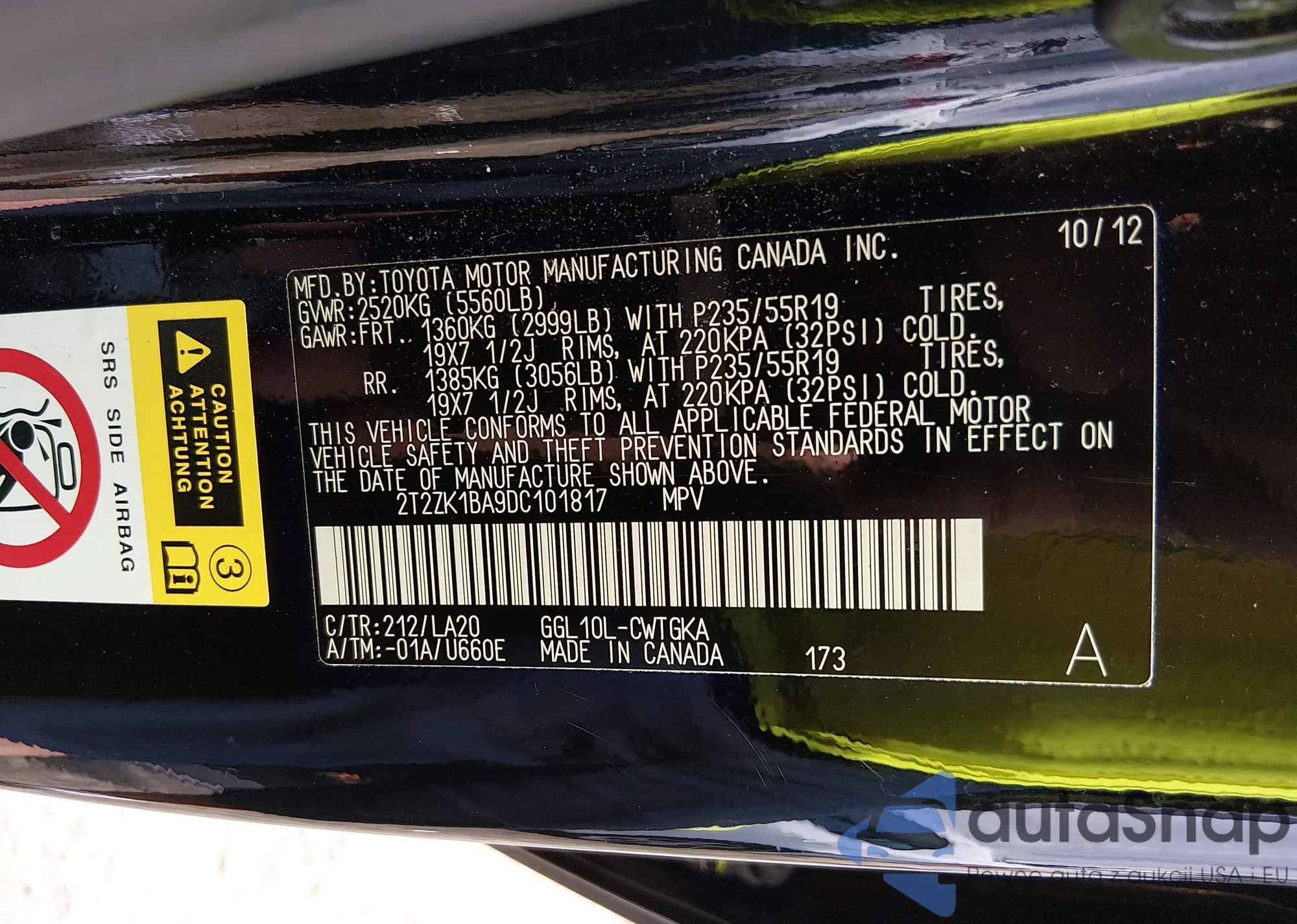 VIN: 2T2ZK1BA9DC101817