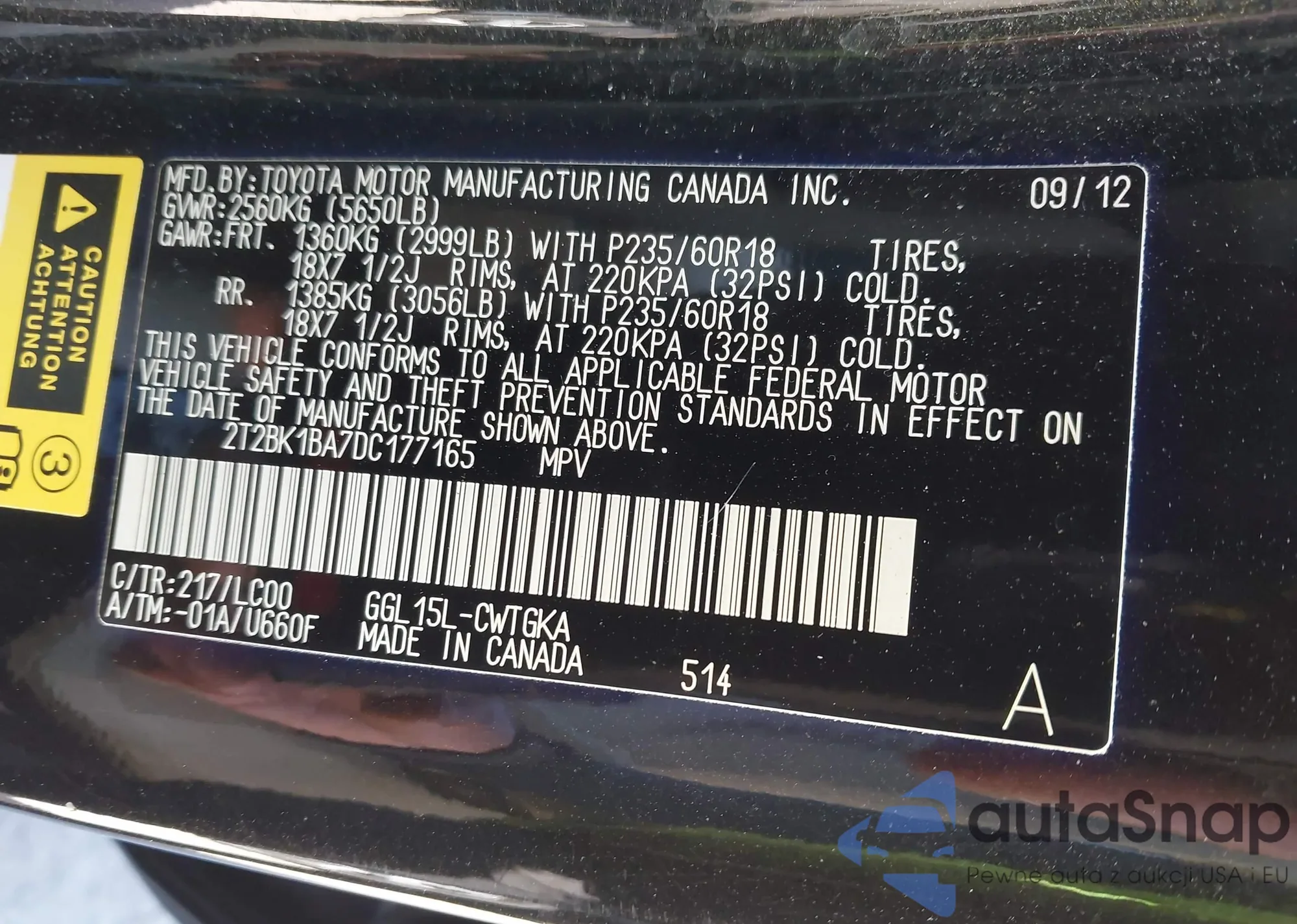 VIN: 2T2BK1BA7DC177165