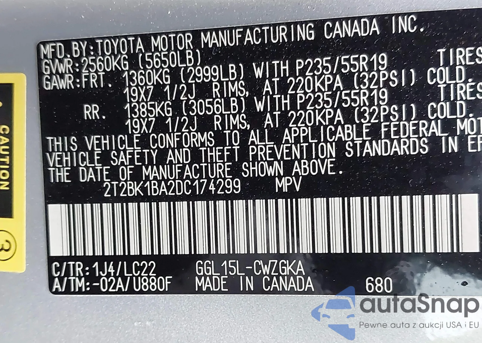 VIN: 2T2BK1BA2DC174299