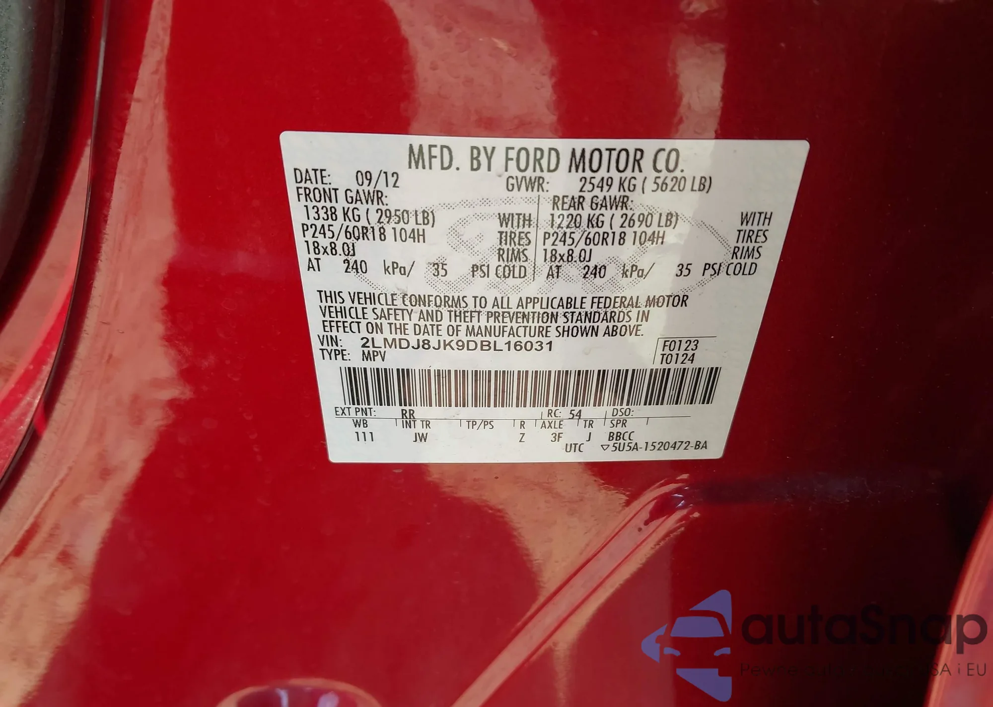 VIN: 2LMDJ8JK9DBL16031